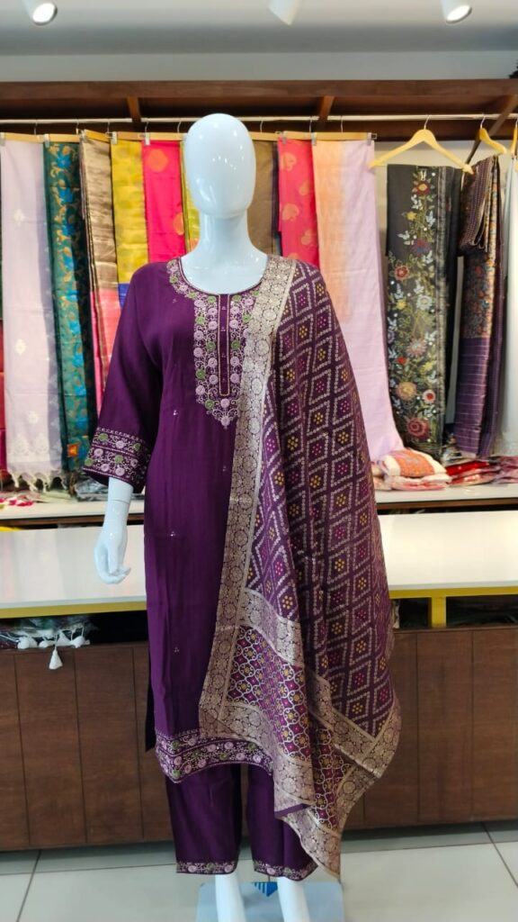 fancy silk 3pc suit with banarsi dupatta