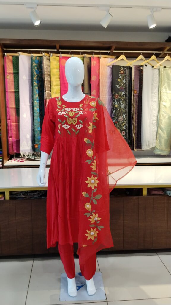 Premium Muslin A-Line Suit with Handcrafted Organza Dupatta