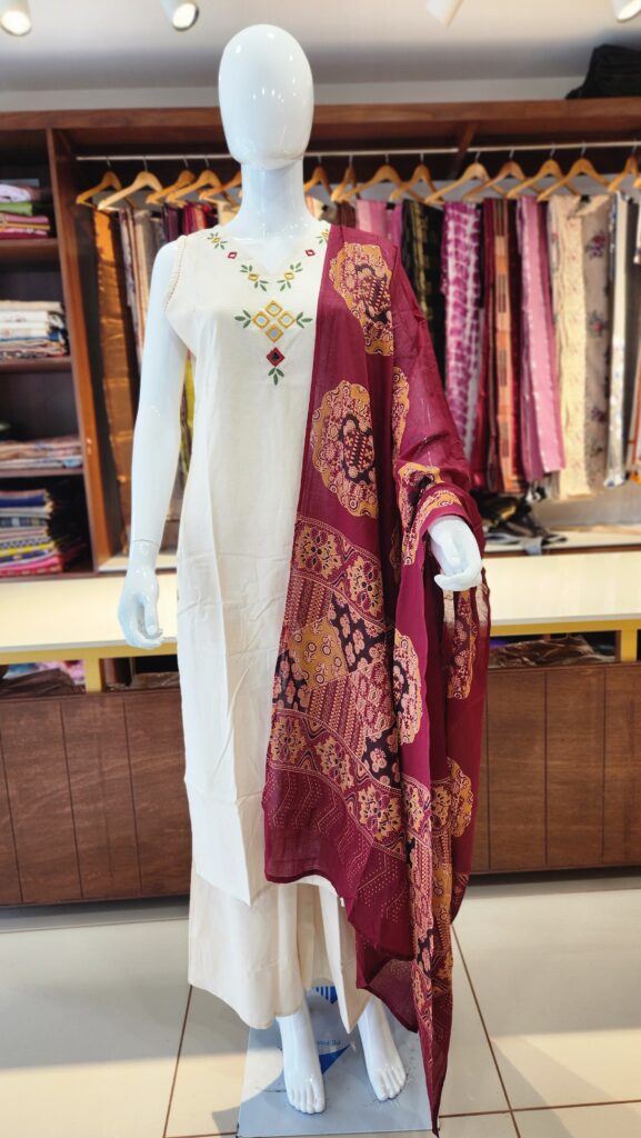 Pure Khadi suit with kalamkari dupatta