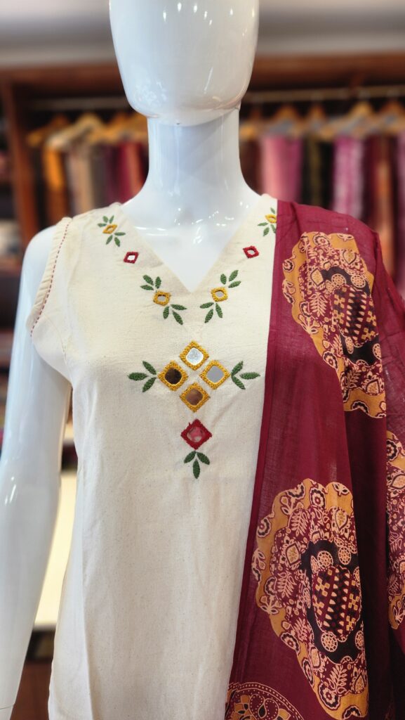 Premium cotton kurta set with fine embroidery