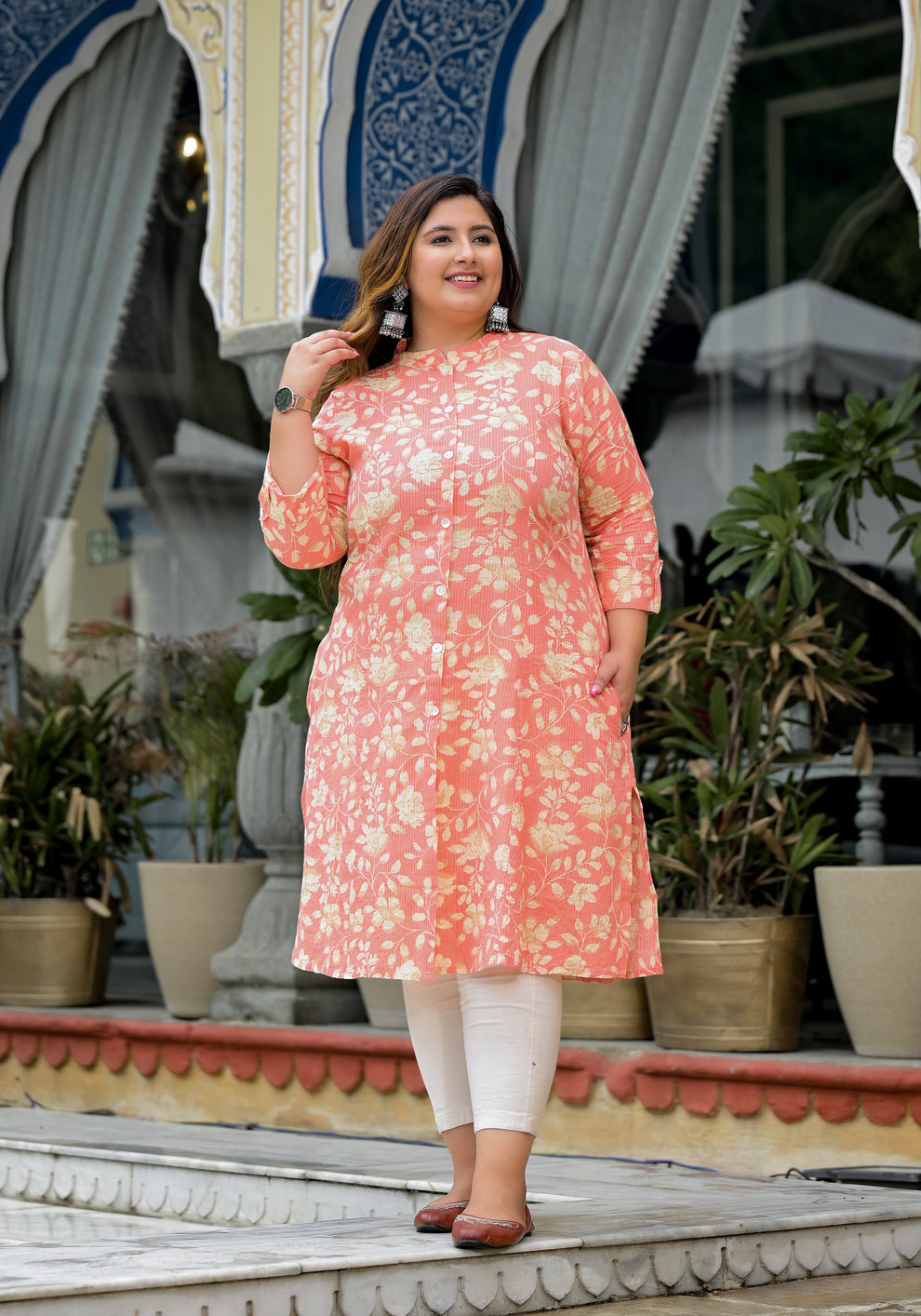 • Floral Print Princess Cut Front Slit ‘A’ Line Kurta