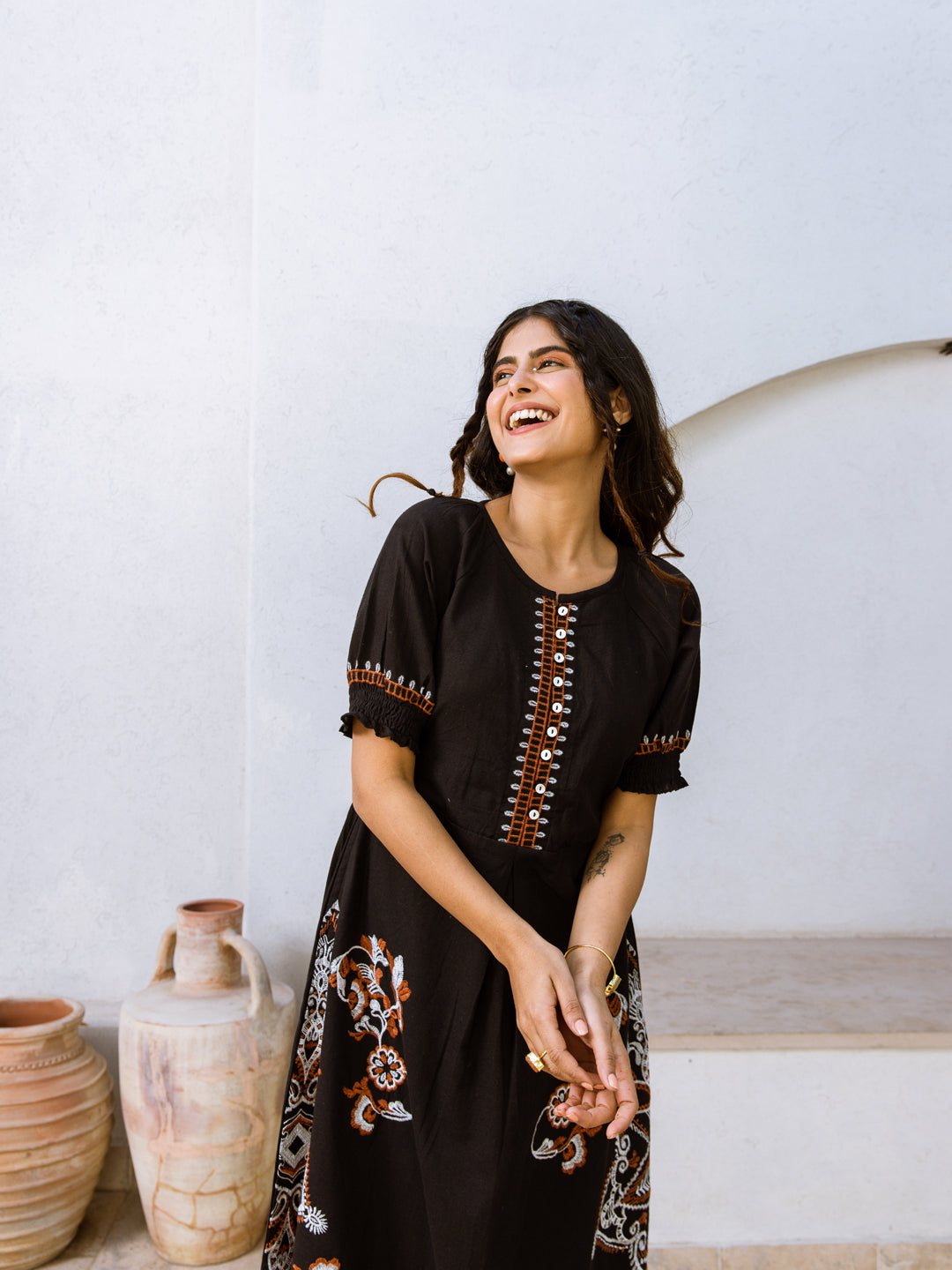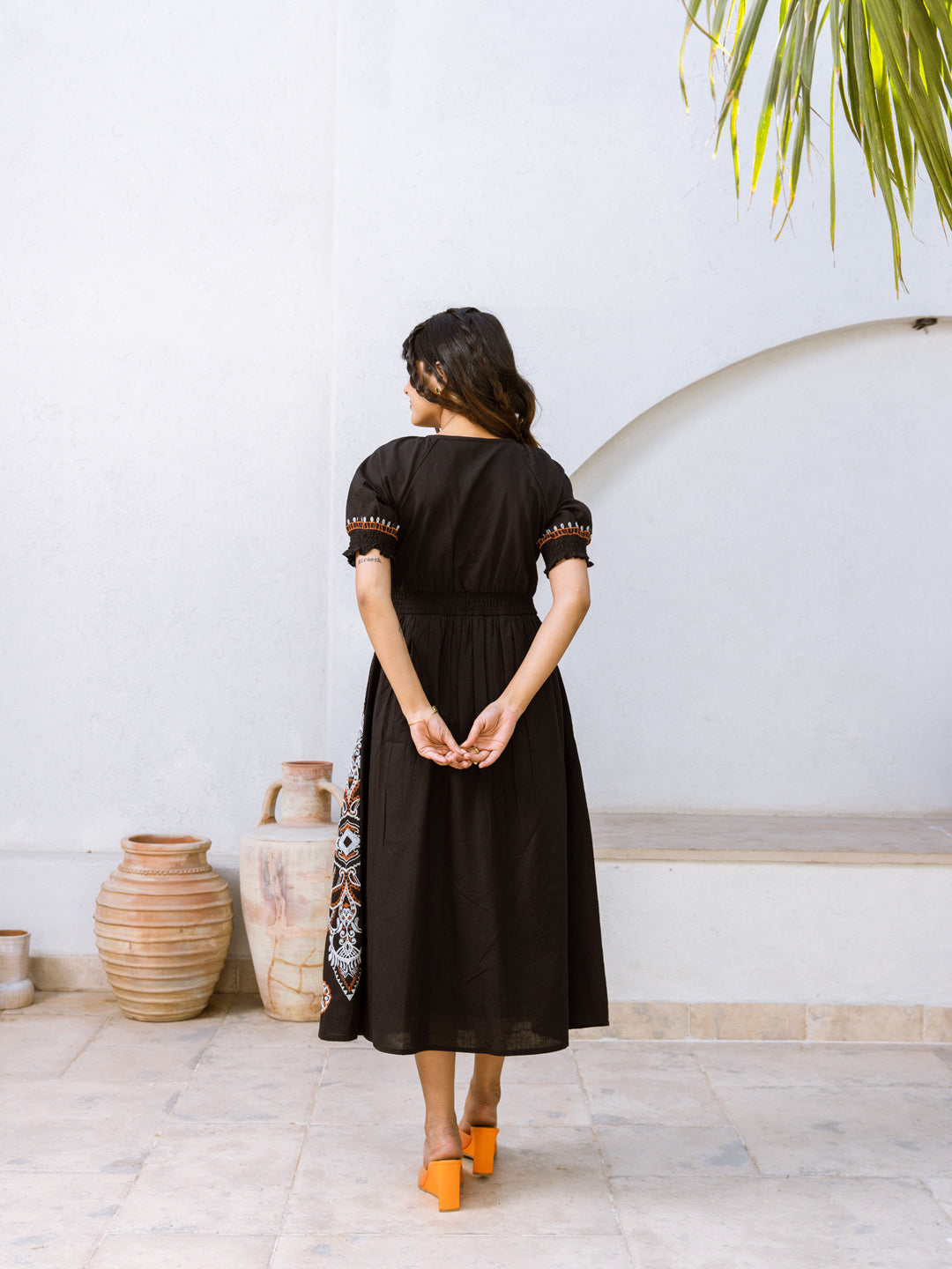 Black pure cotton midi with embroidery