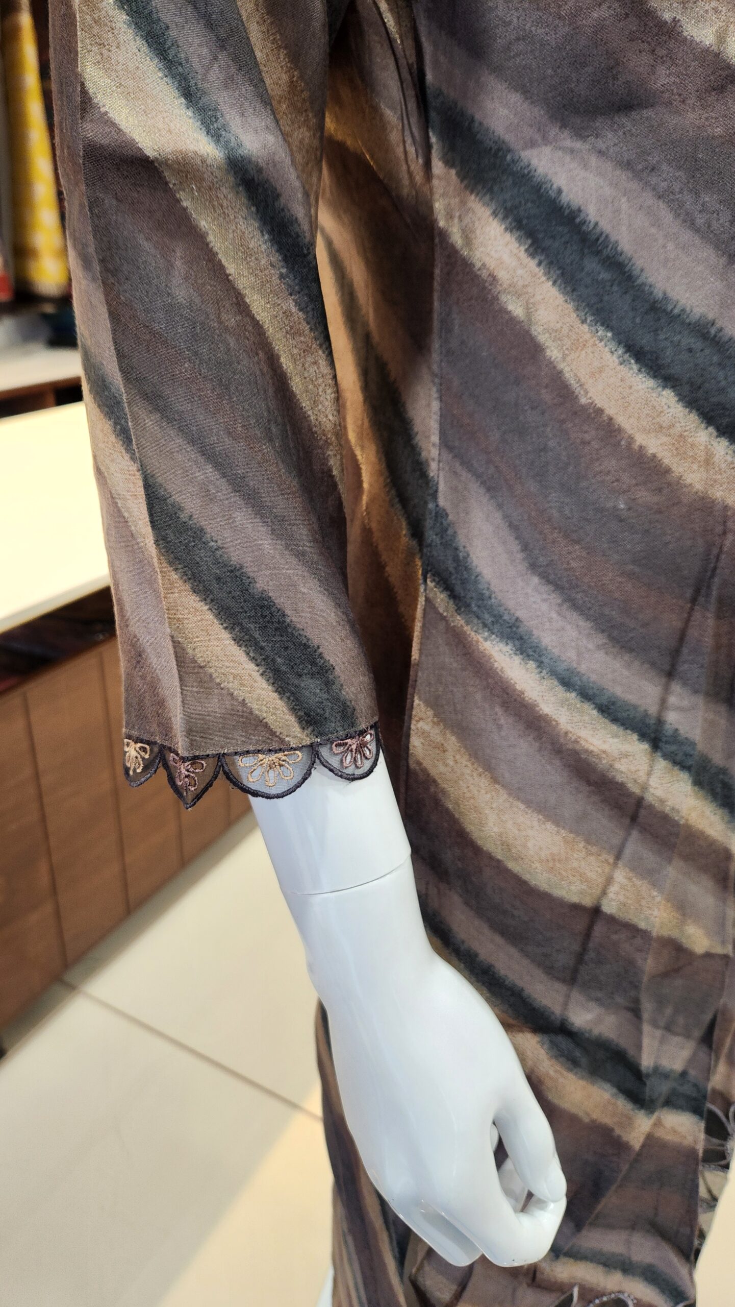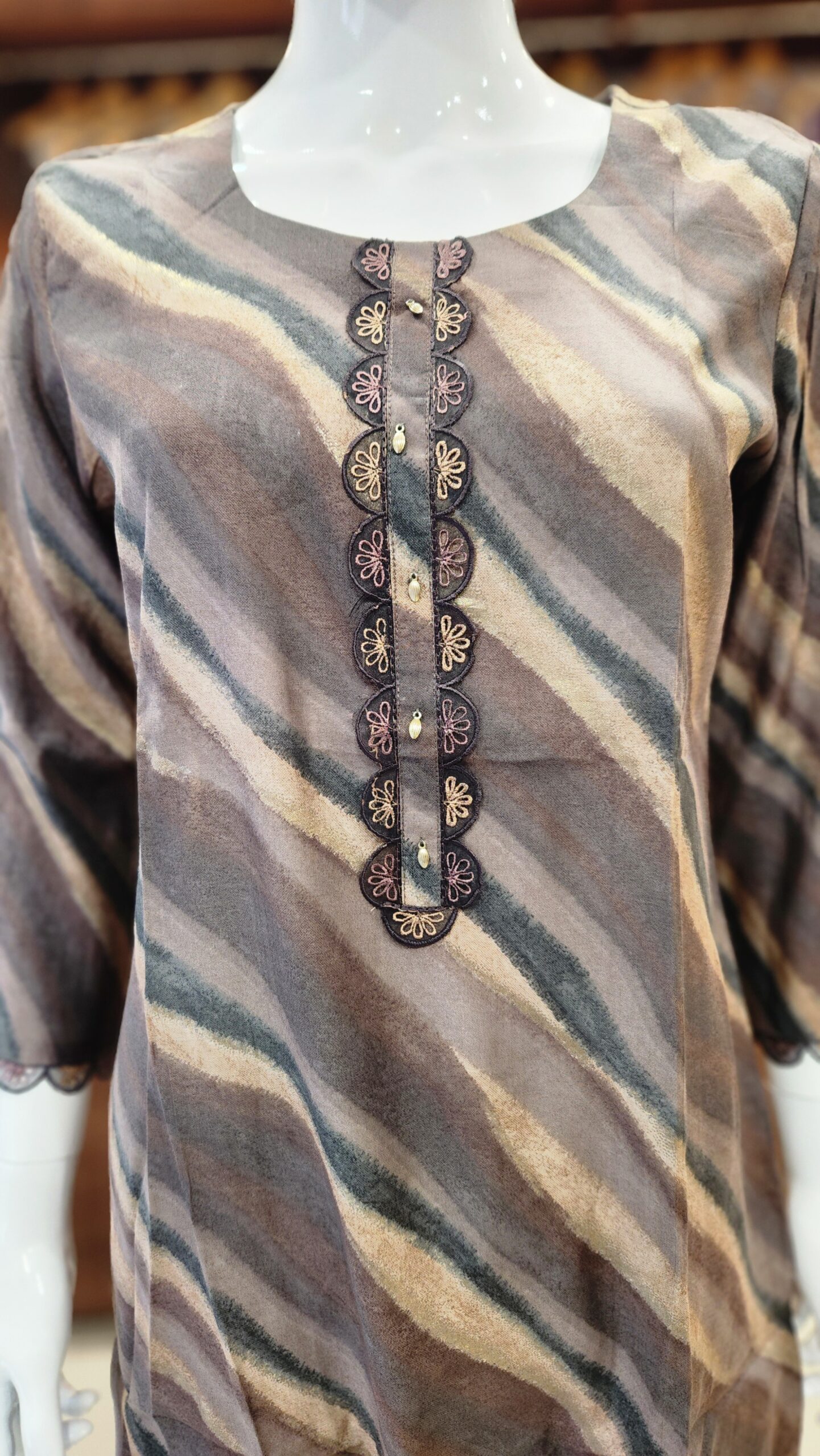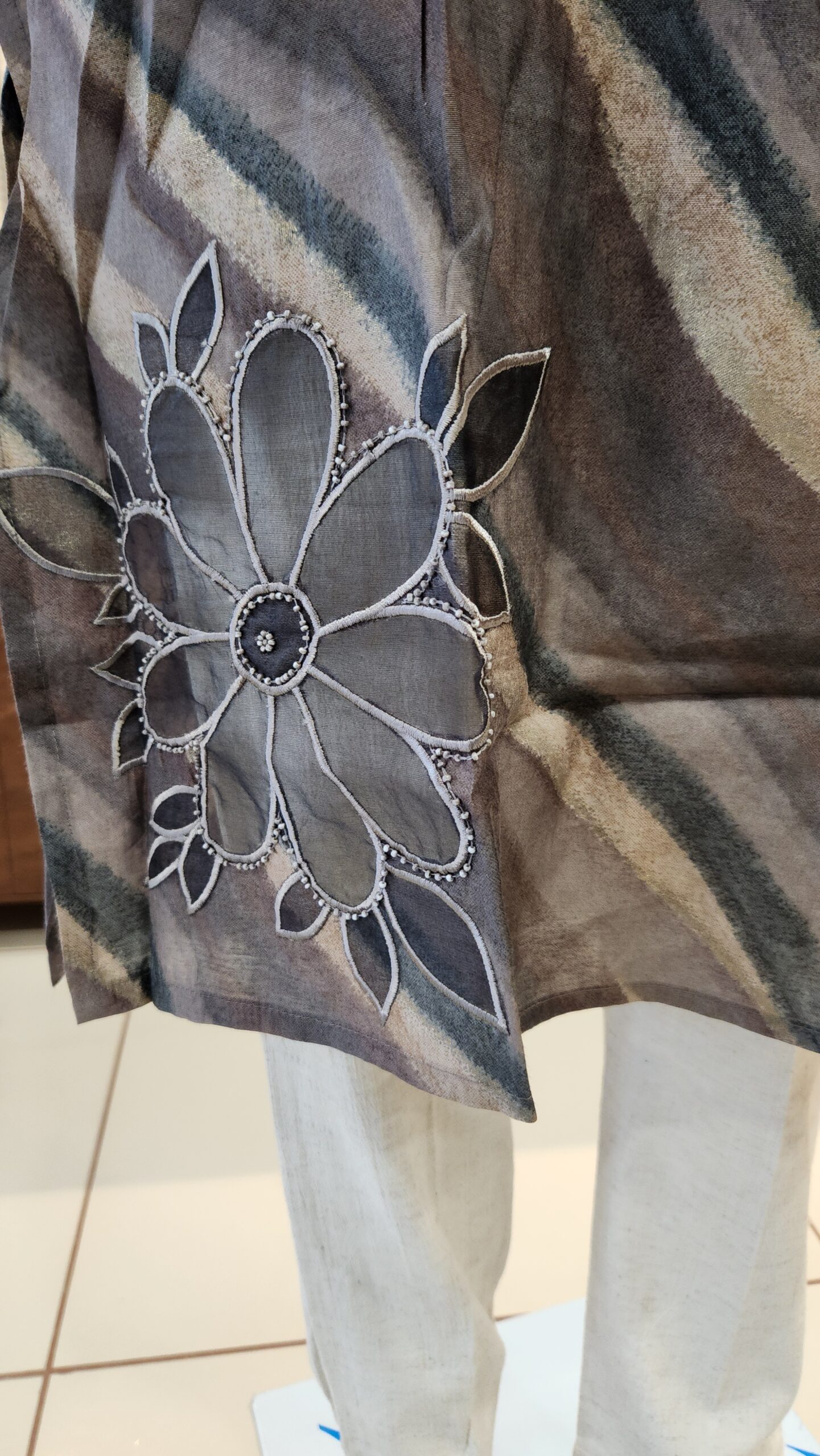 Add a touch of artistry to your wardrobe with this Cotton Kurti featuring intricate appliqué work. Crafted from soft, breathable cotton, this kurti offers all-day comfort with a stylish twist. The appliqué detailing adds texture and visual appeal, making it a perfect choice for casual outings, office wear, or small gatherings. Pair it with leggings, straight pants, or jeans for a versatile ethnic-fusion look.