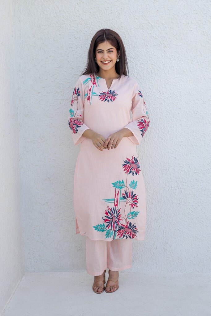 “Pure cotton 3-piece suit with hand-done real mirror work – elegant, festive, and timeless.”