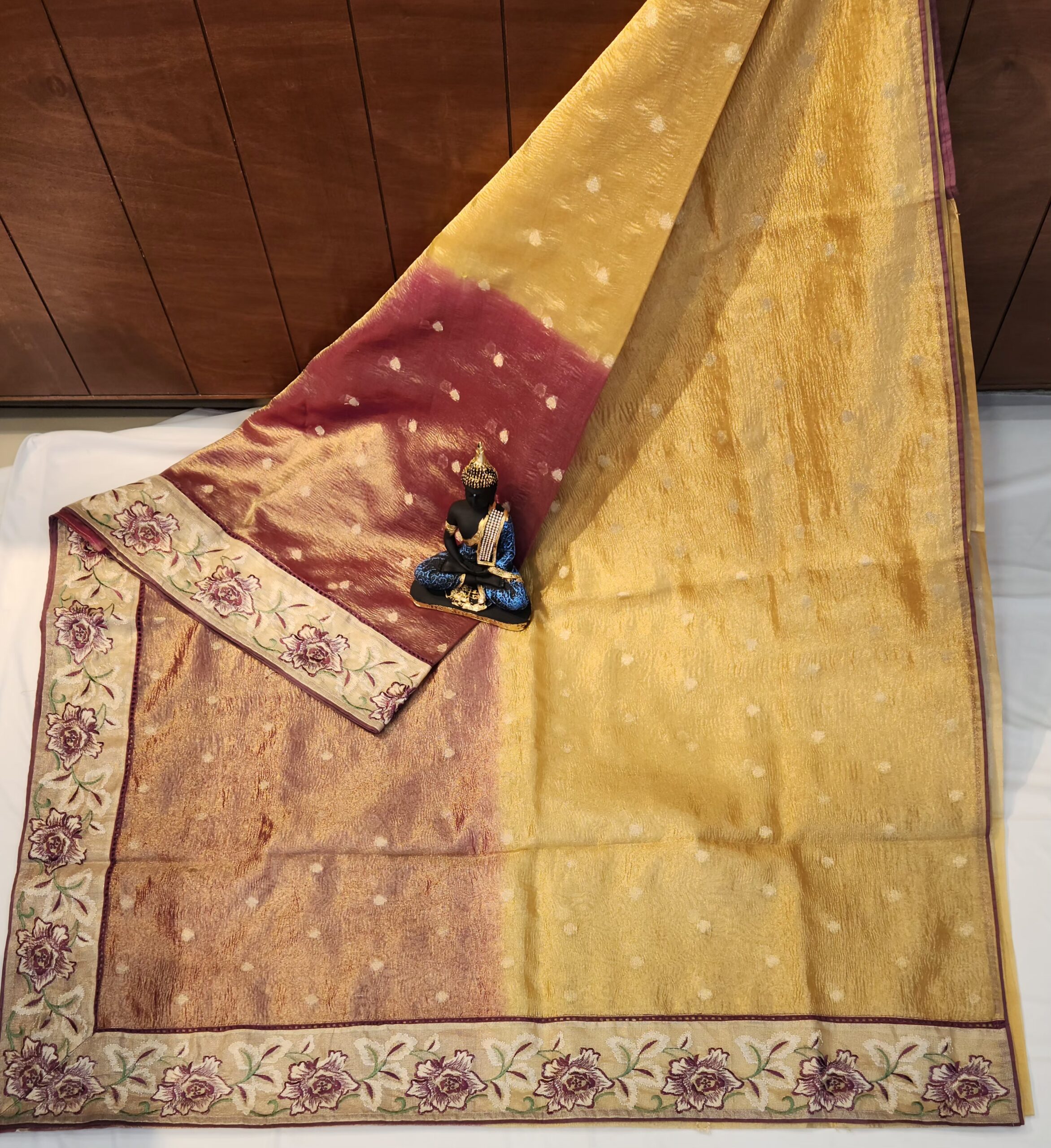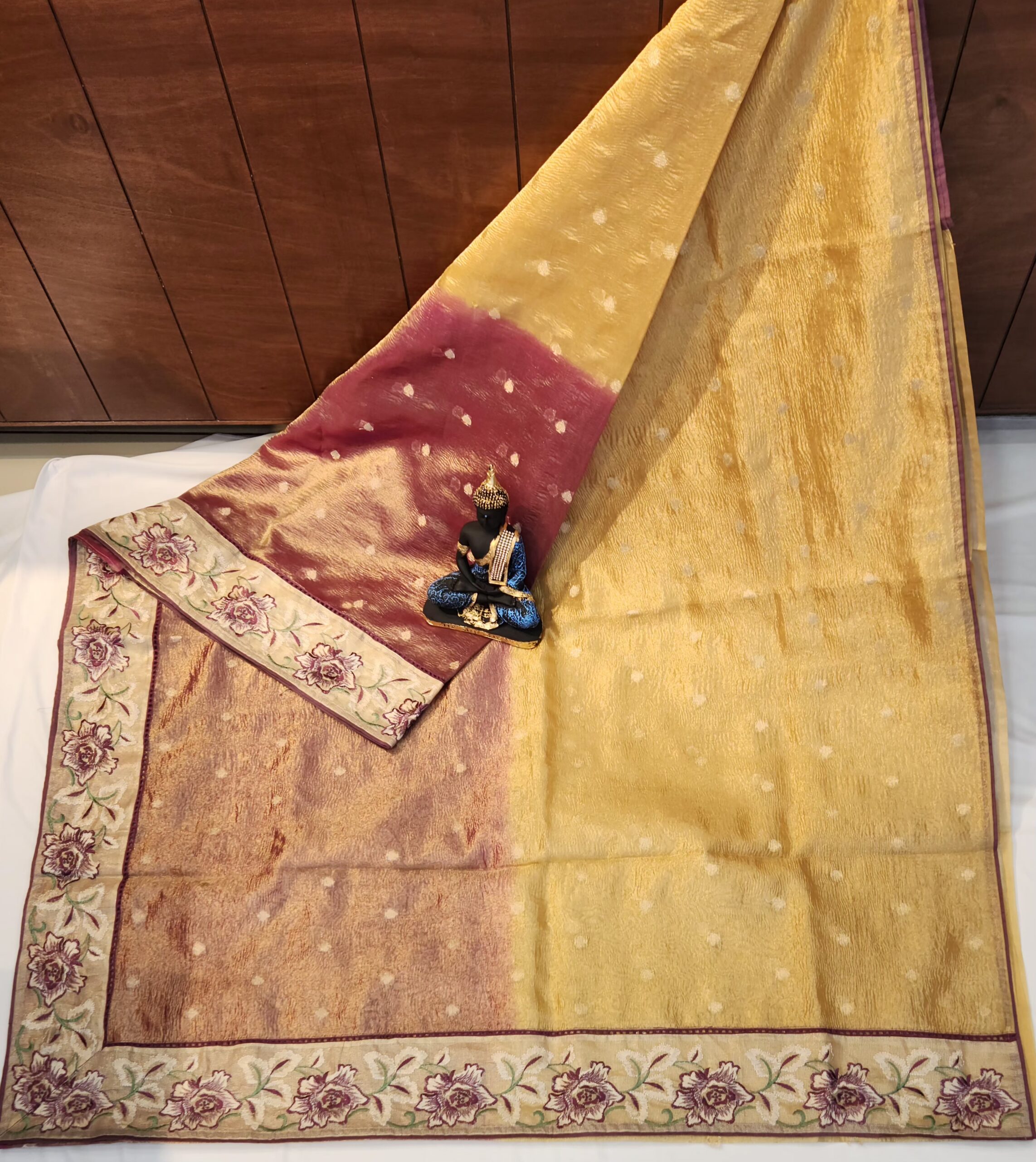 CRUSH ORGANZA SAREE IN DOUBLE SHADE WITH EMBROIDERED BORDER