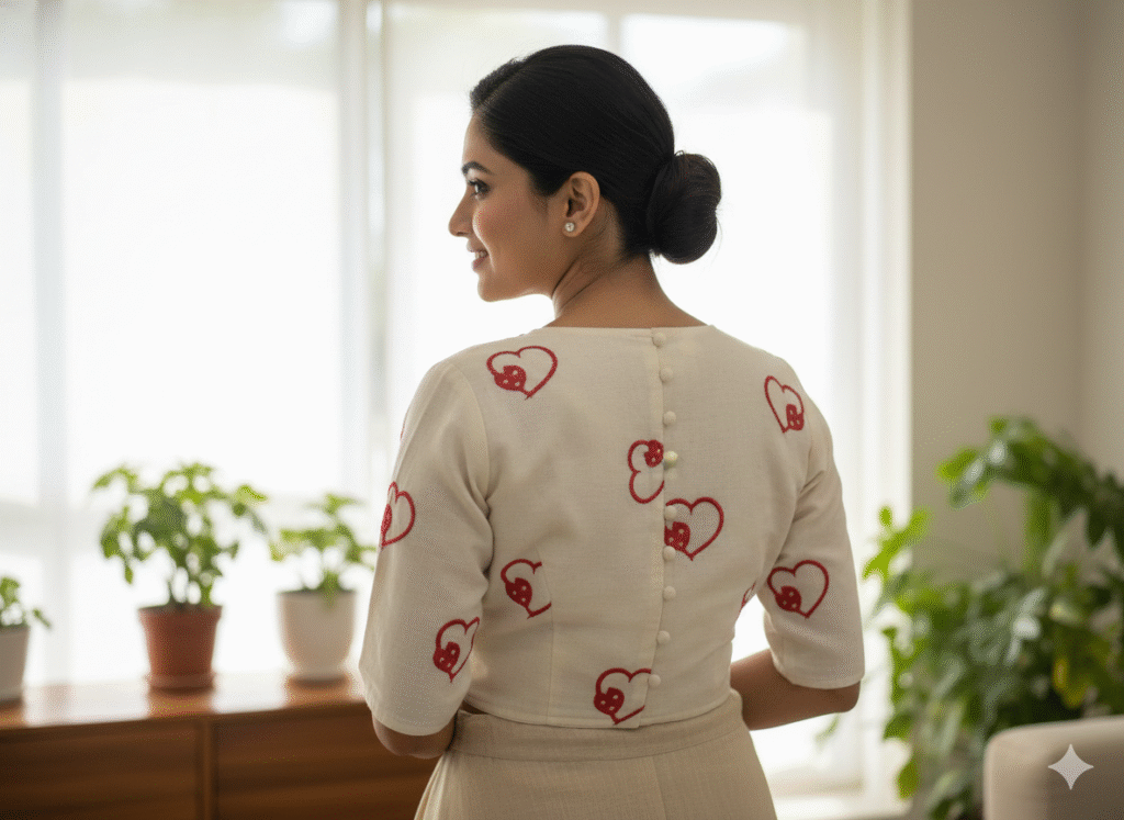 Elevate your ethnic wardrobe with the perfect blend of traditional artistry and modern convenience. This ready-to-wear blouse is crafted from premium, breathable pure cotton, ensuring you stay comfortable from morning festivities to evening celebrations.