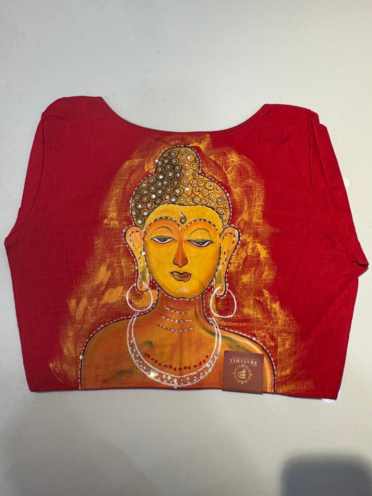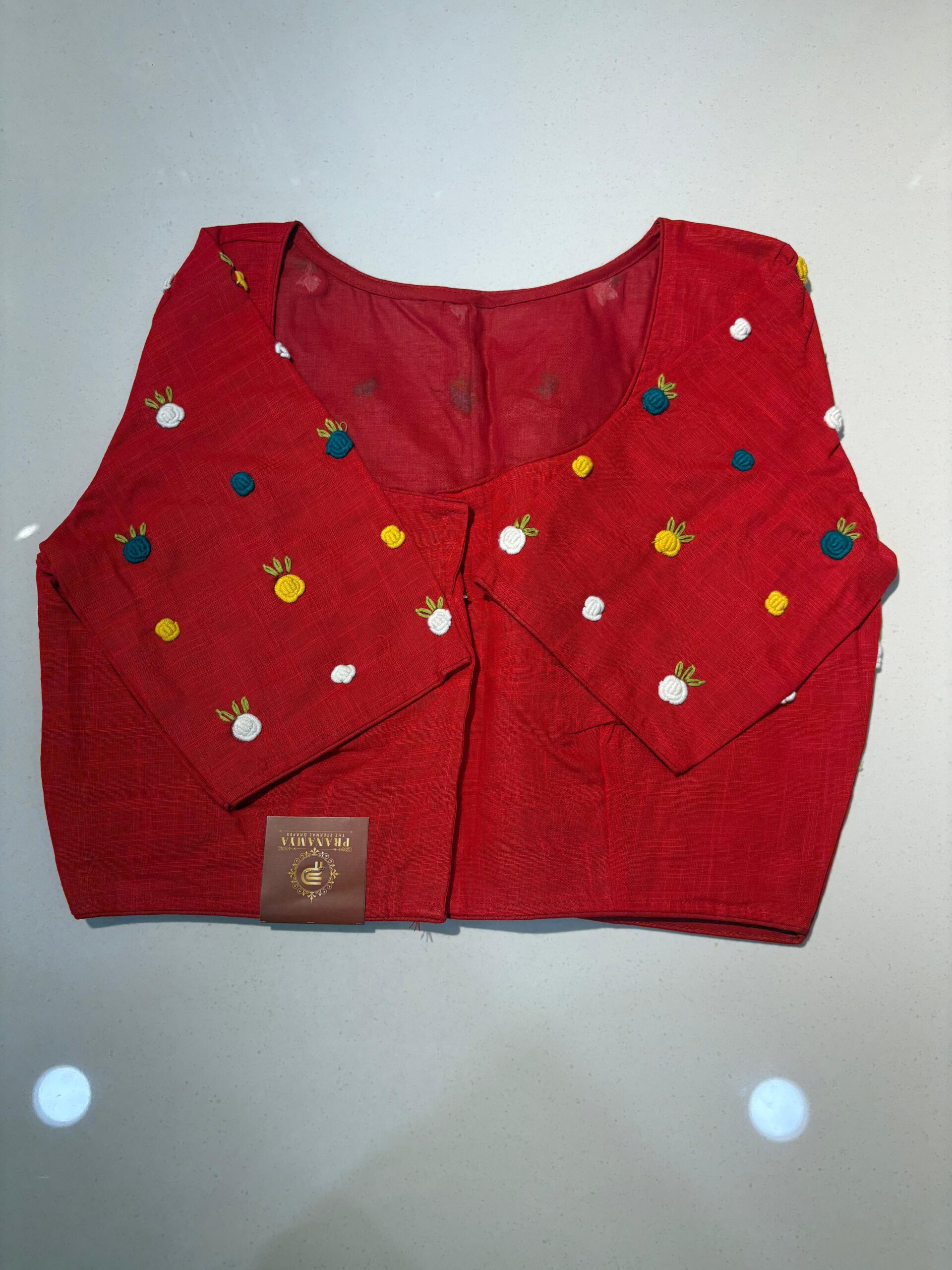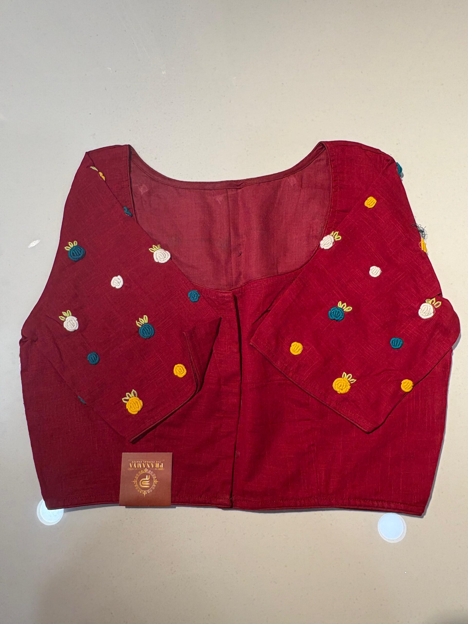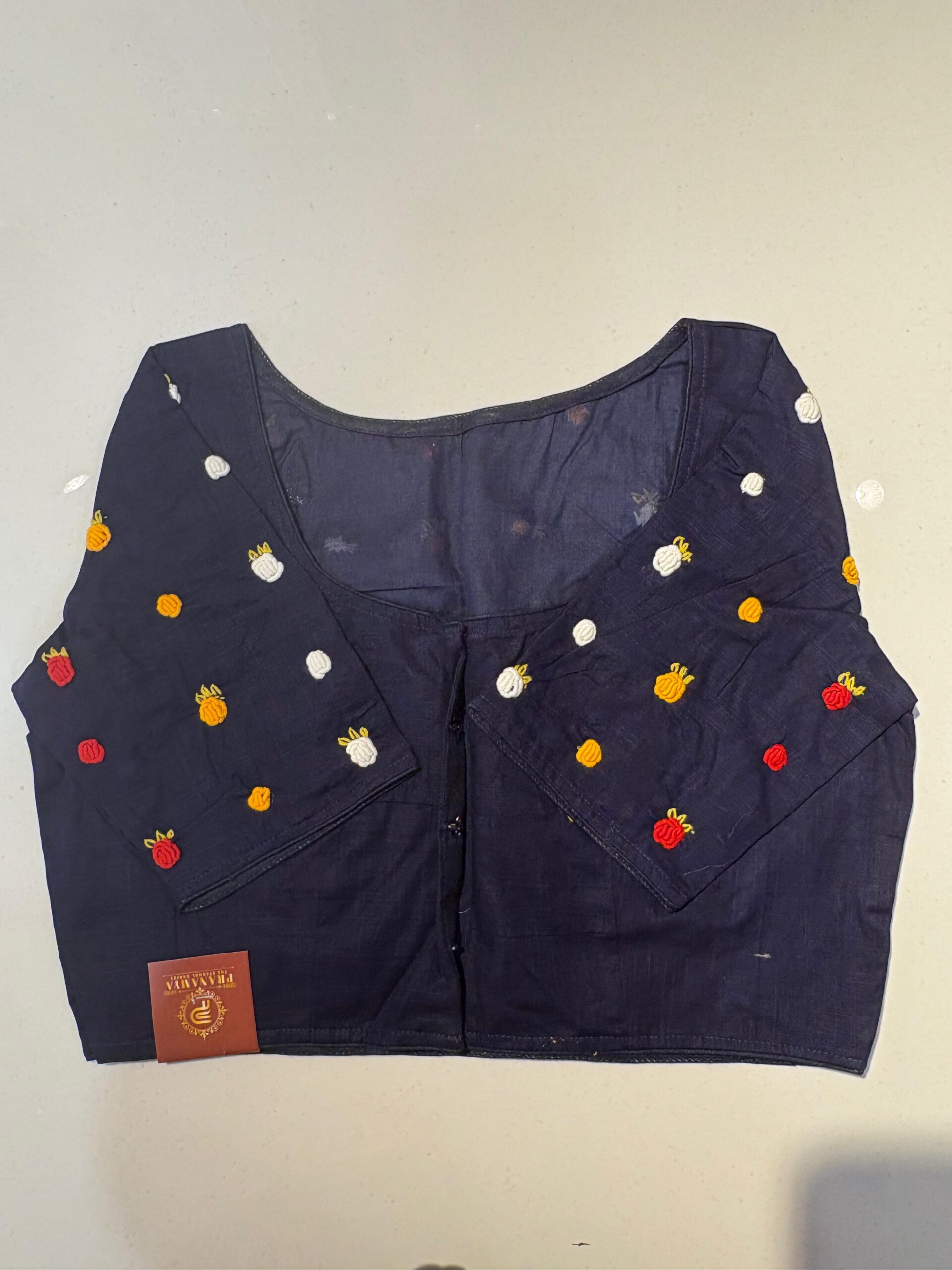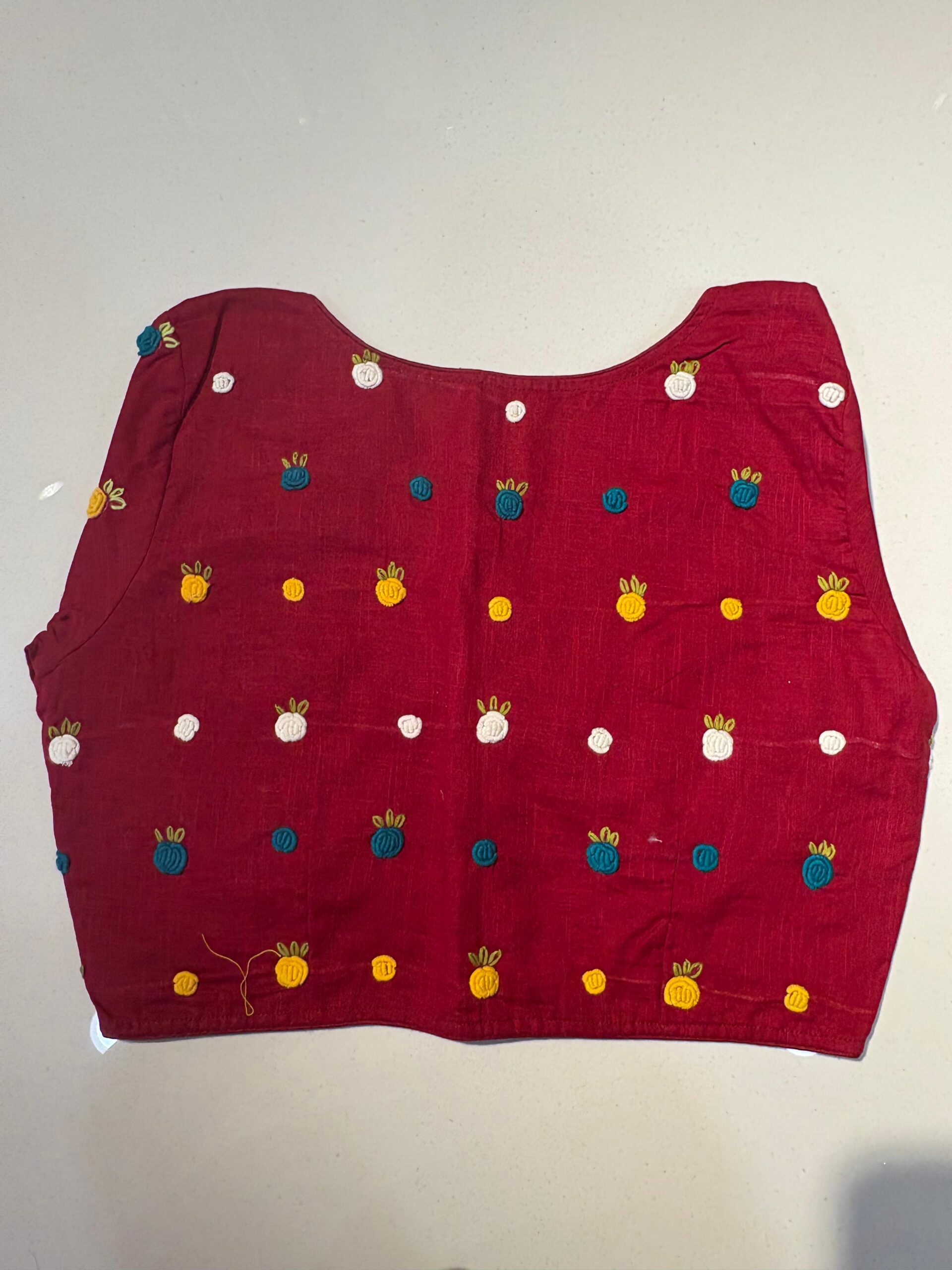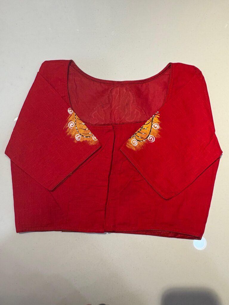 Styling Tip: Pair this blouse with a solid-colored linen saree and oxidized silver jewelry to let the hand-work truly shine. Comes in beautiful PRINCESS CUT.
