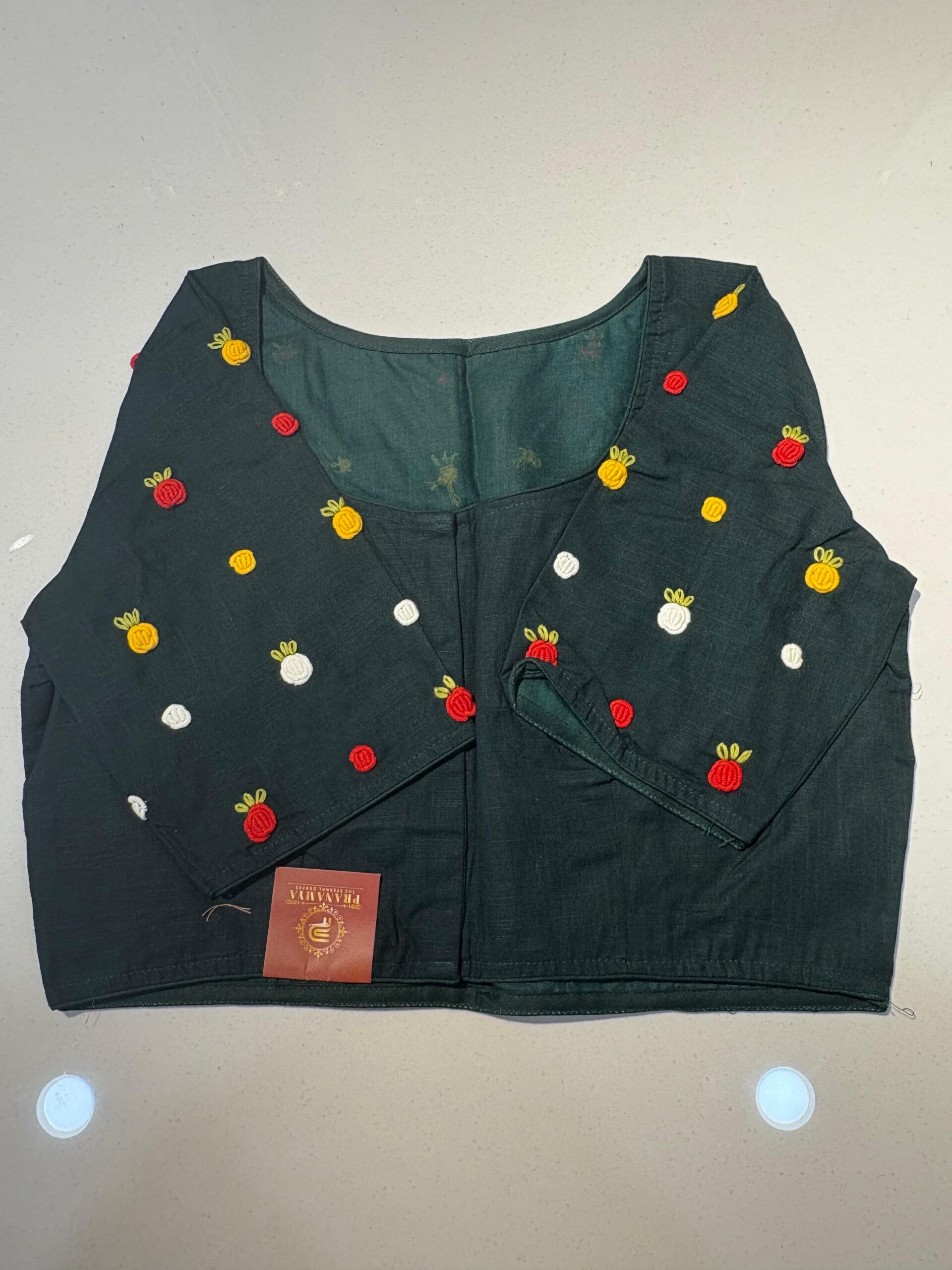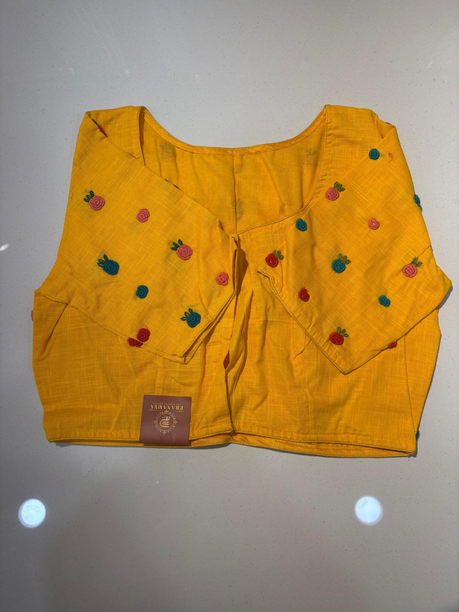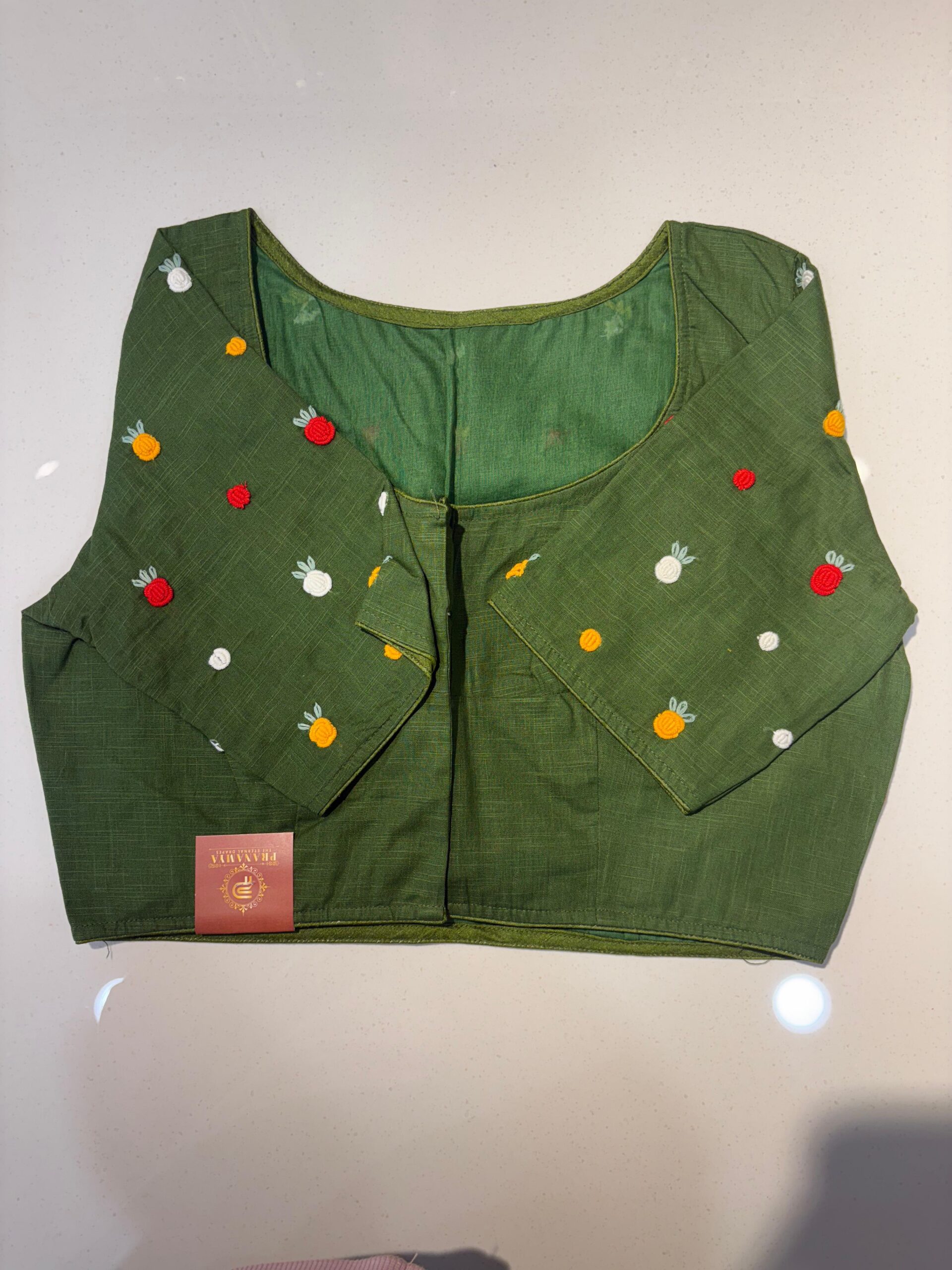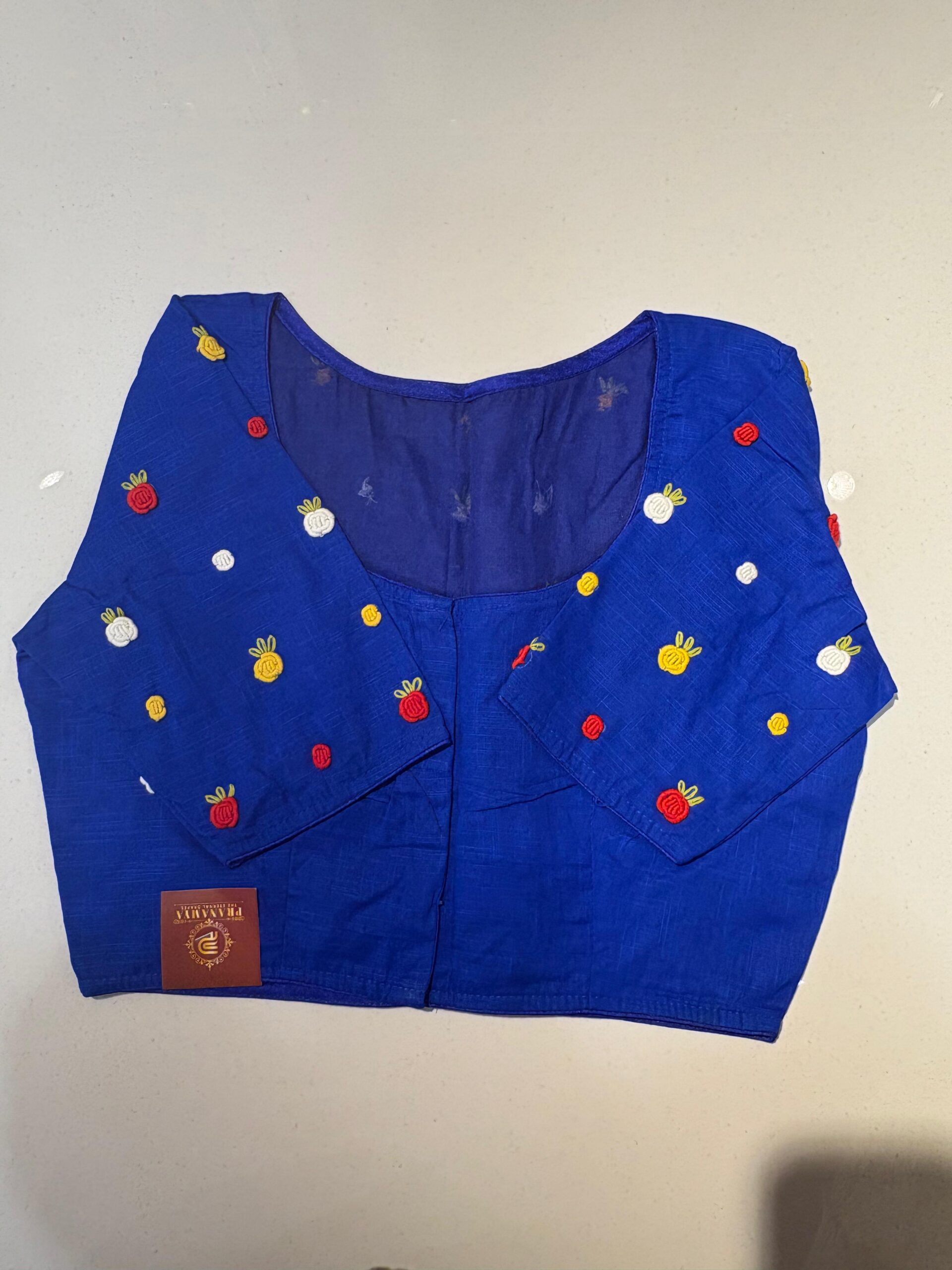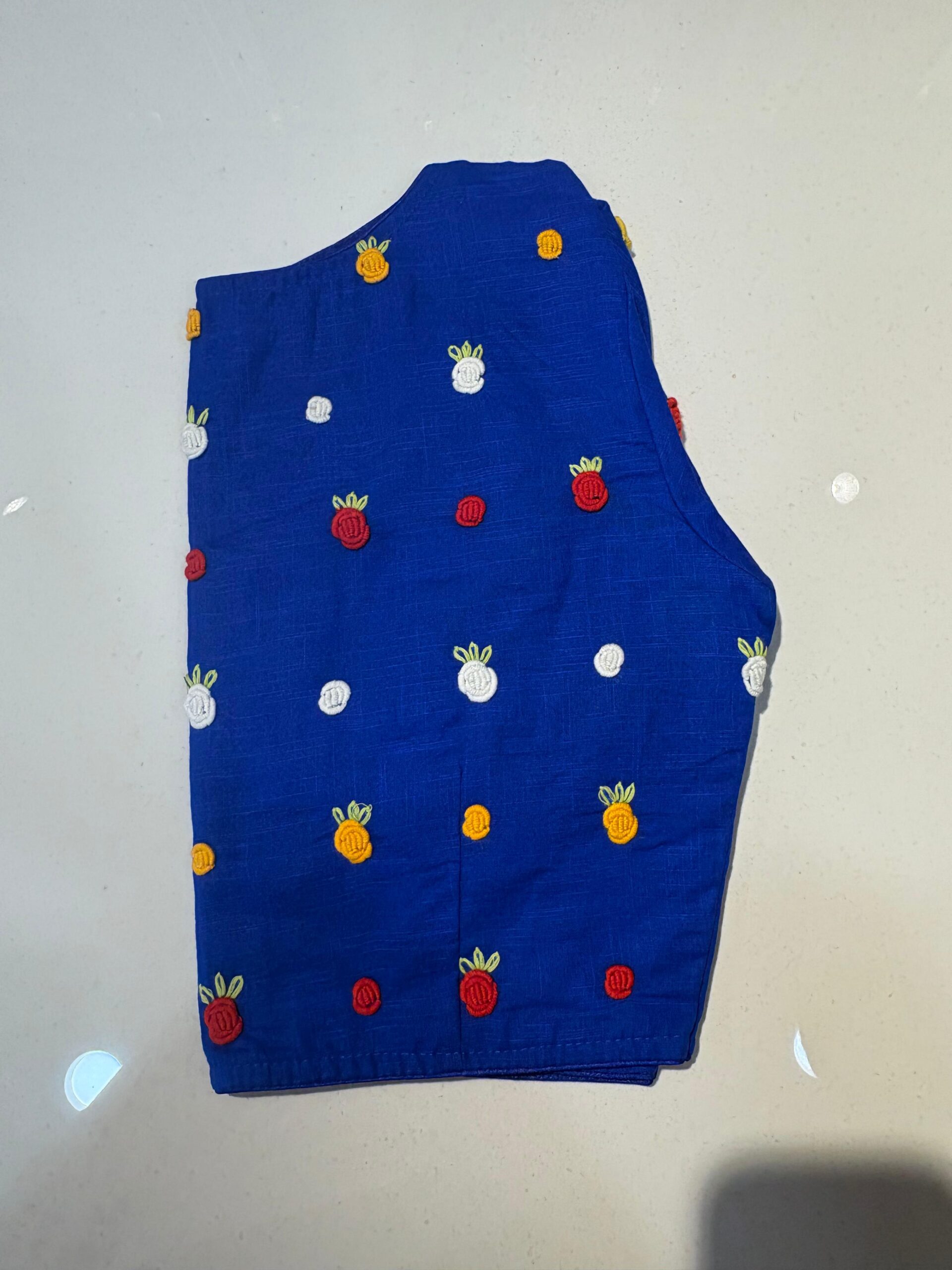 Styling Tip: Pair this blouse with a solid-colored linen saree and oxidized silver jewelry to let the hand-work truly shine. Comes in beautiful PRINCESS CUT.