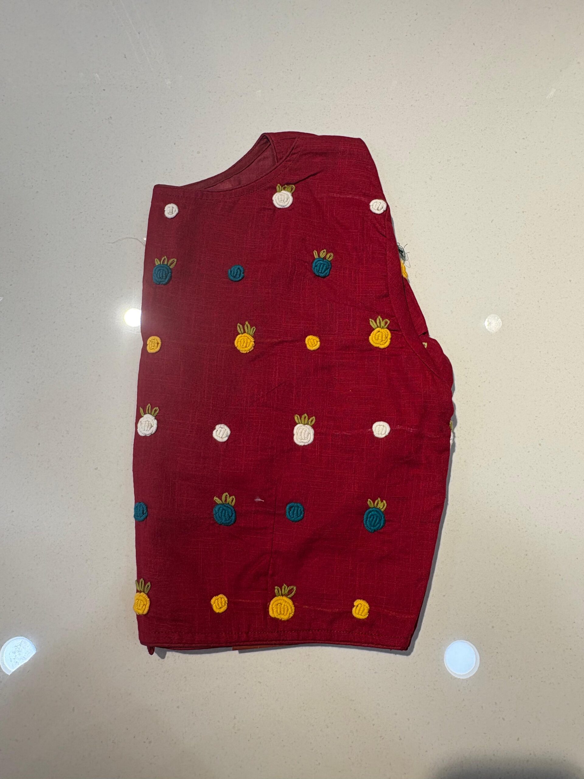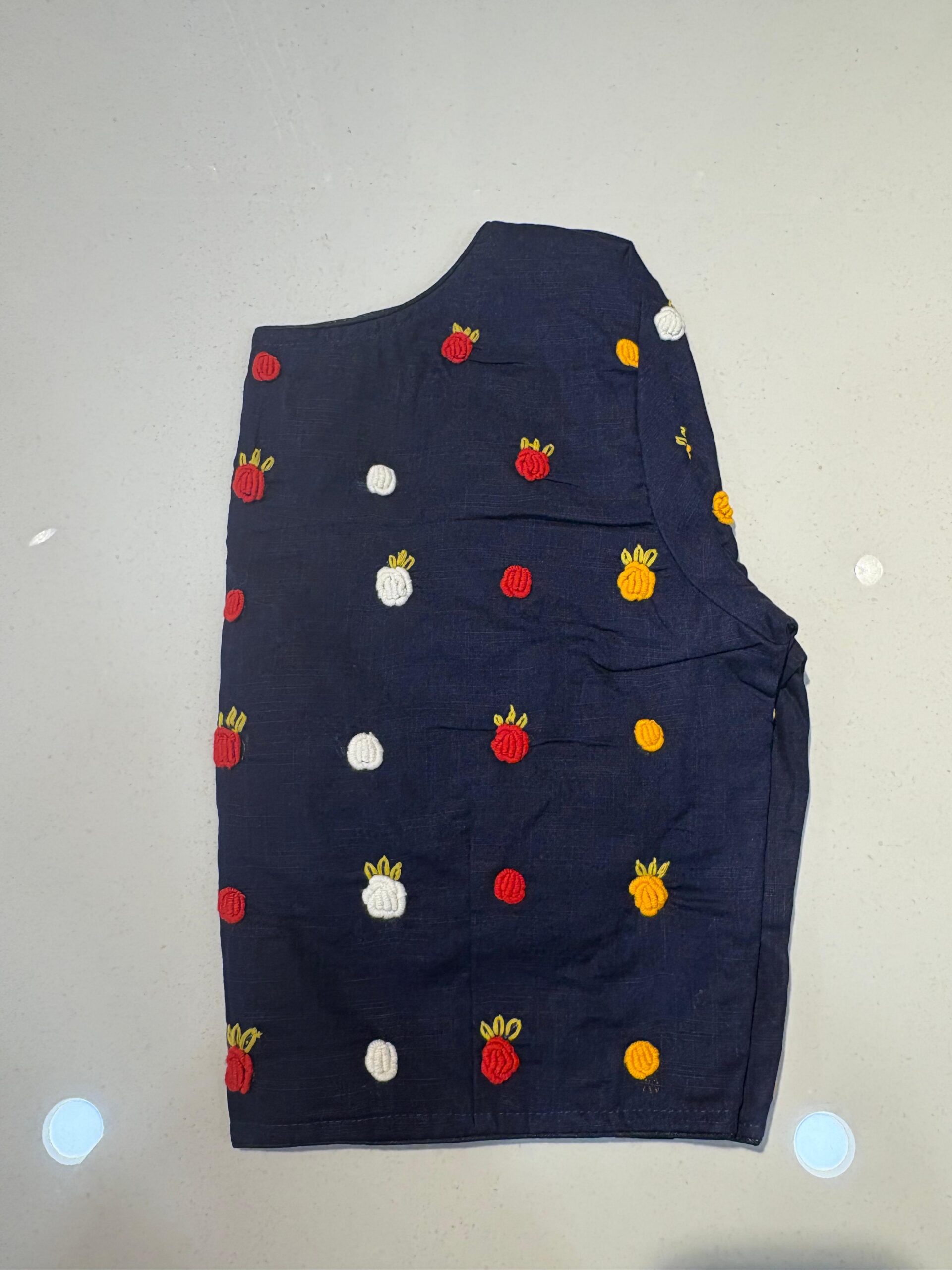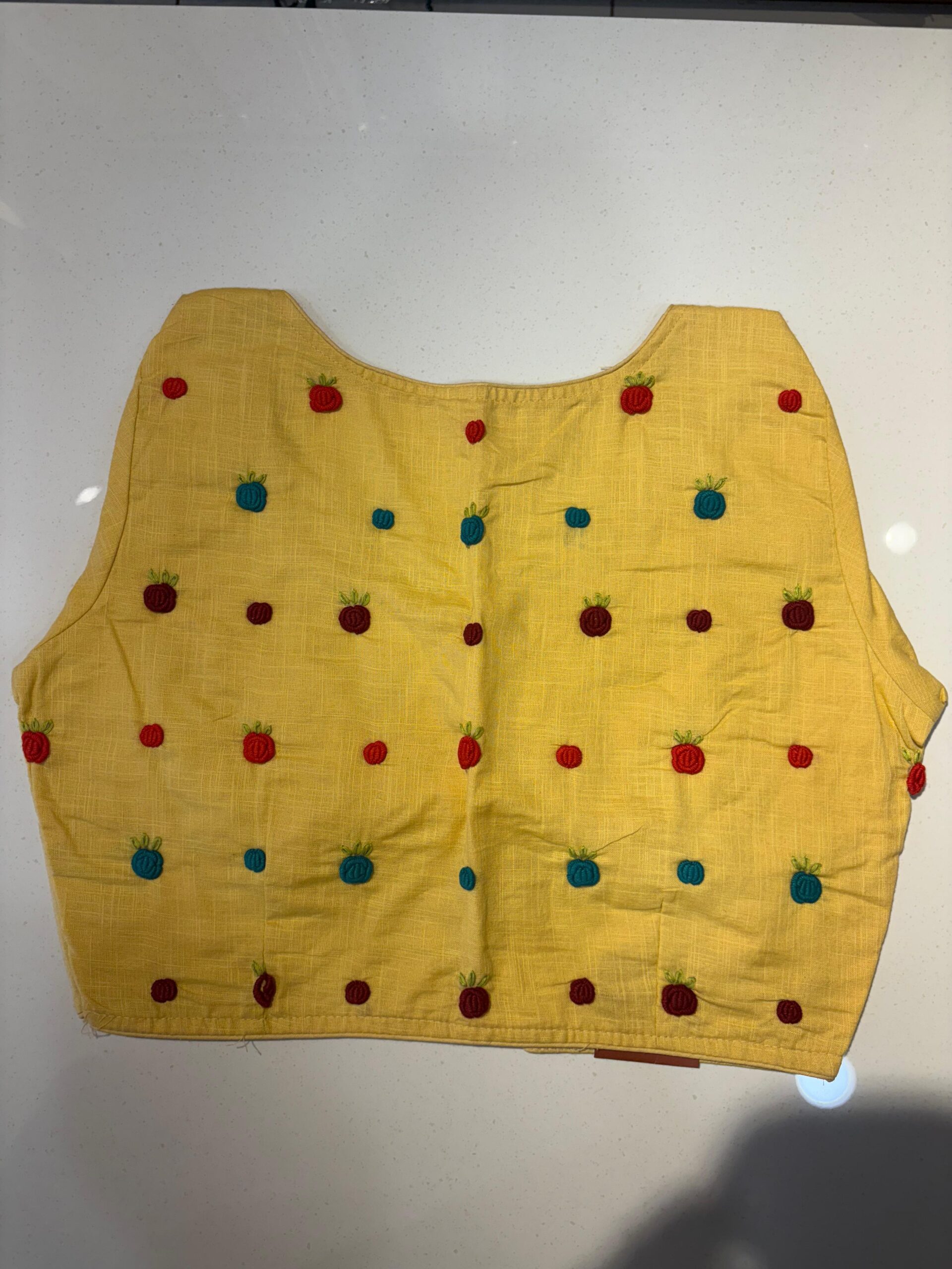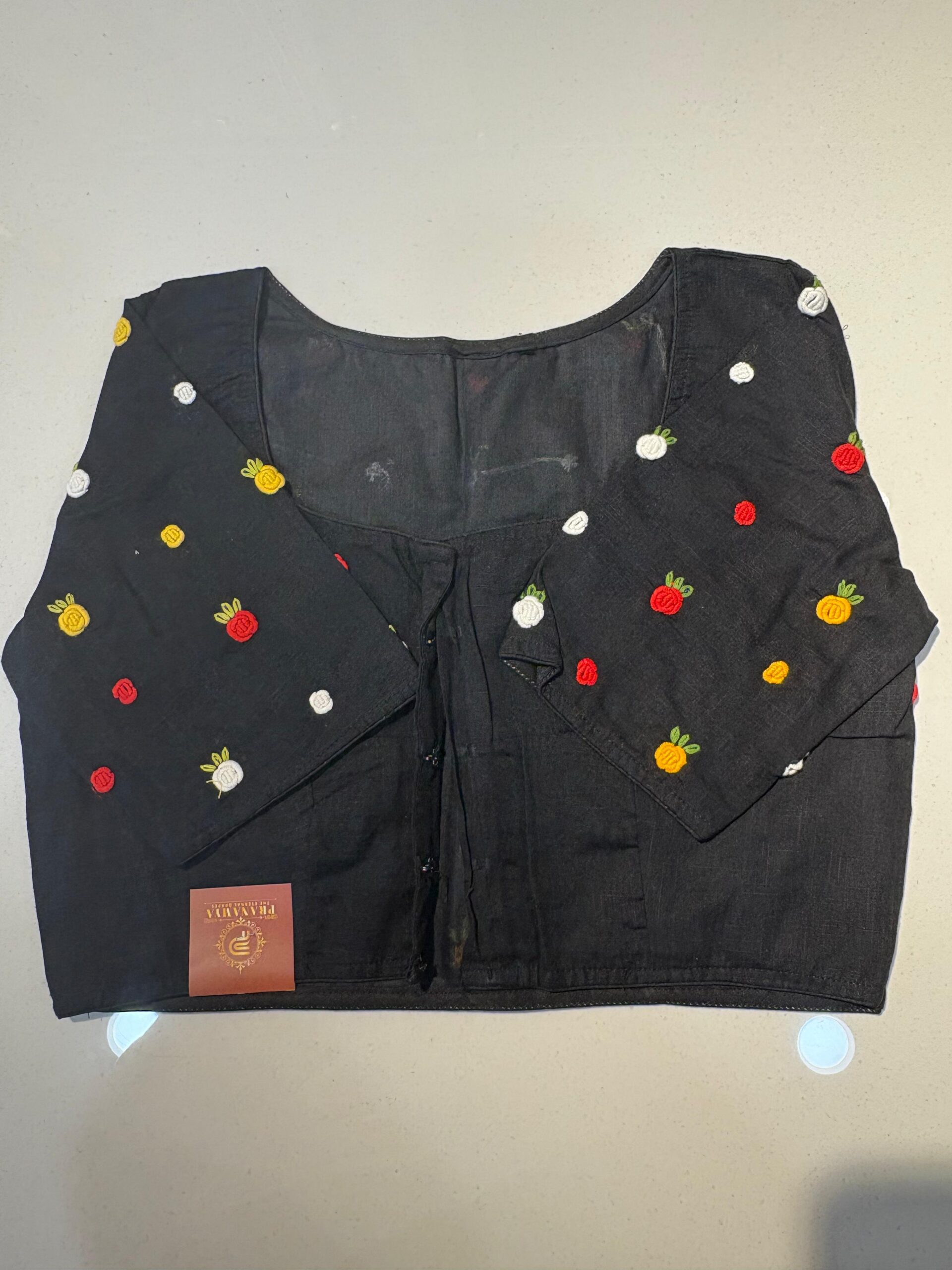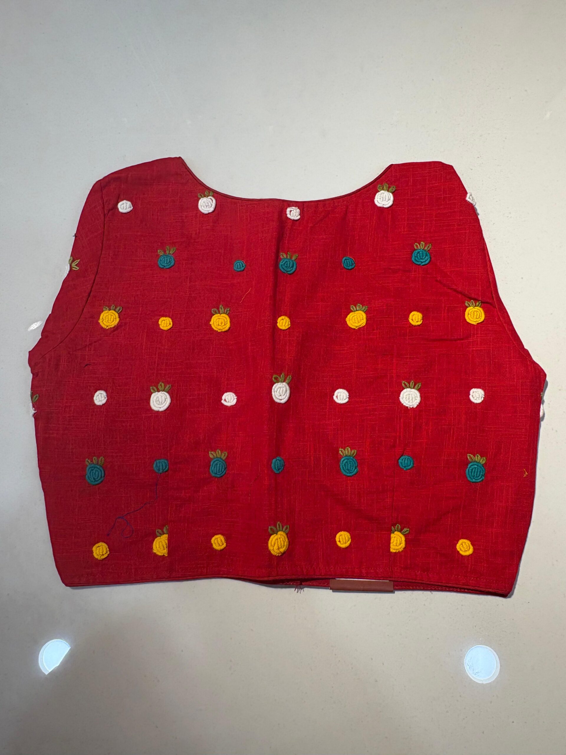 Styling Tip: Pair this blouse with a solid-colored linen saree and oxidized silver jewelry to let the hand-work truly shine. Comes in beautiful PRINCESS CUT.