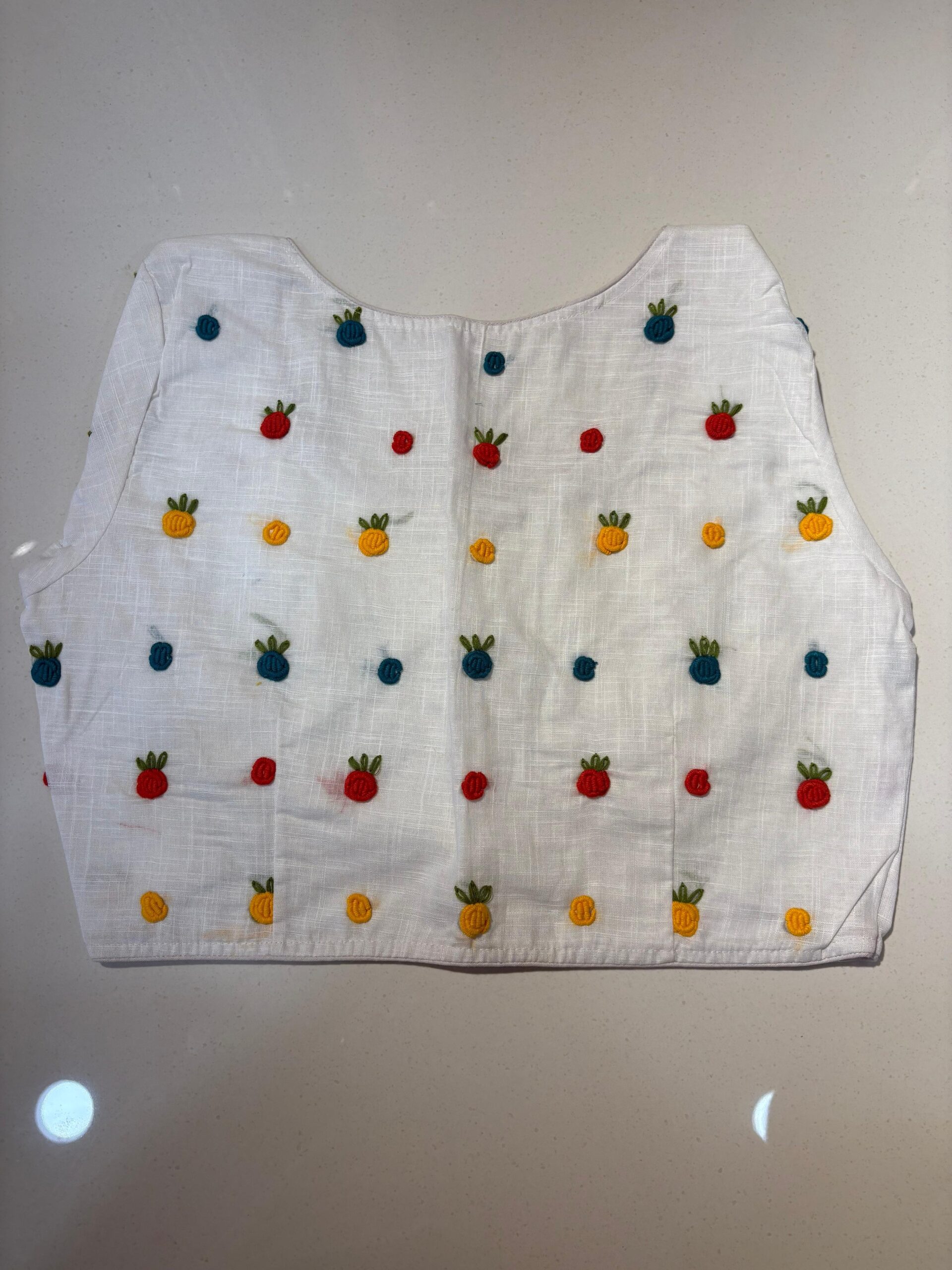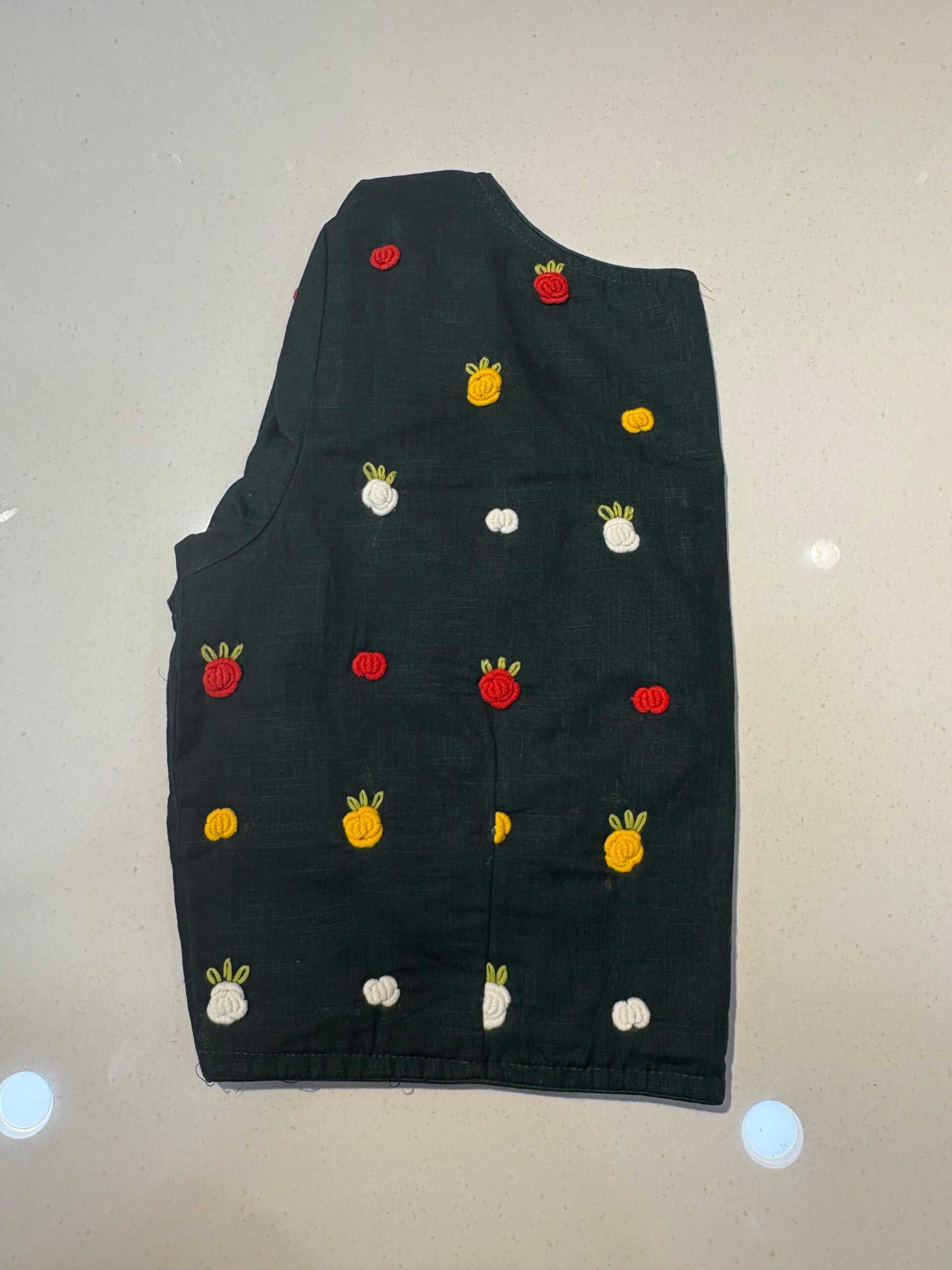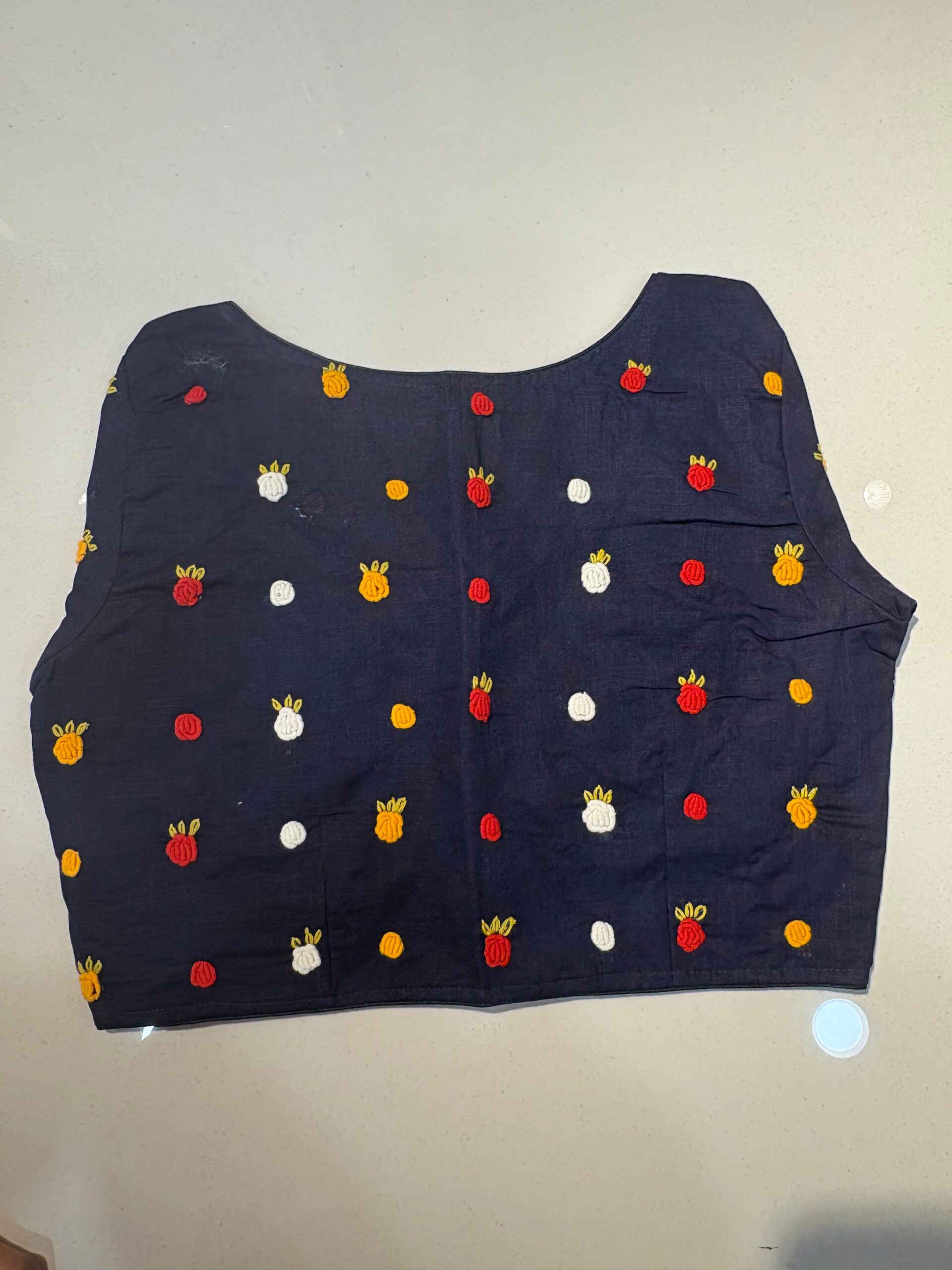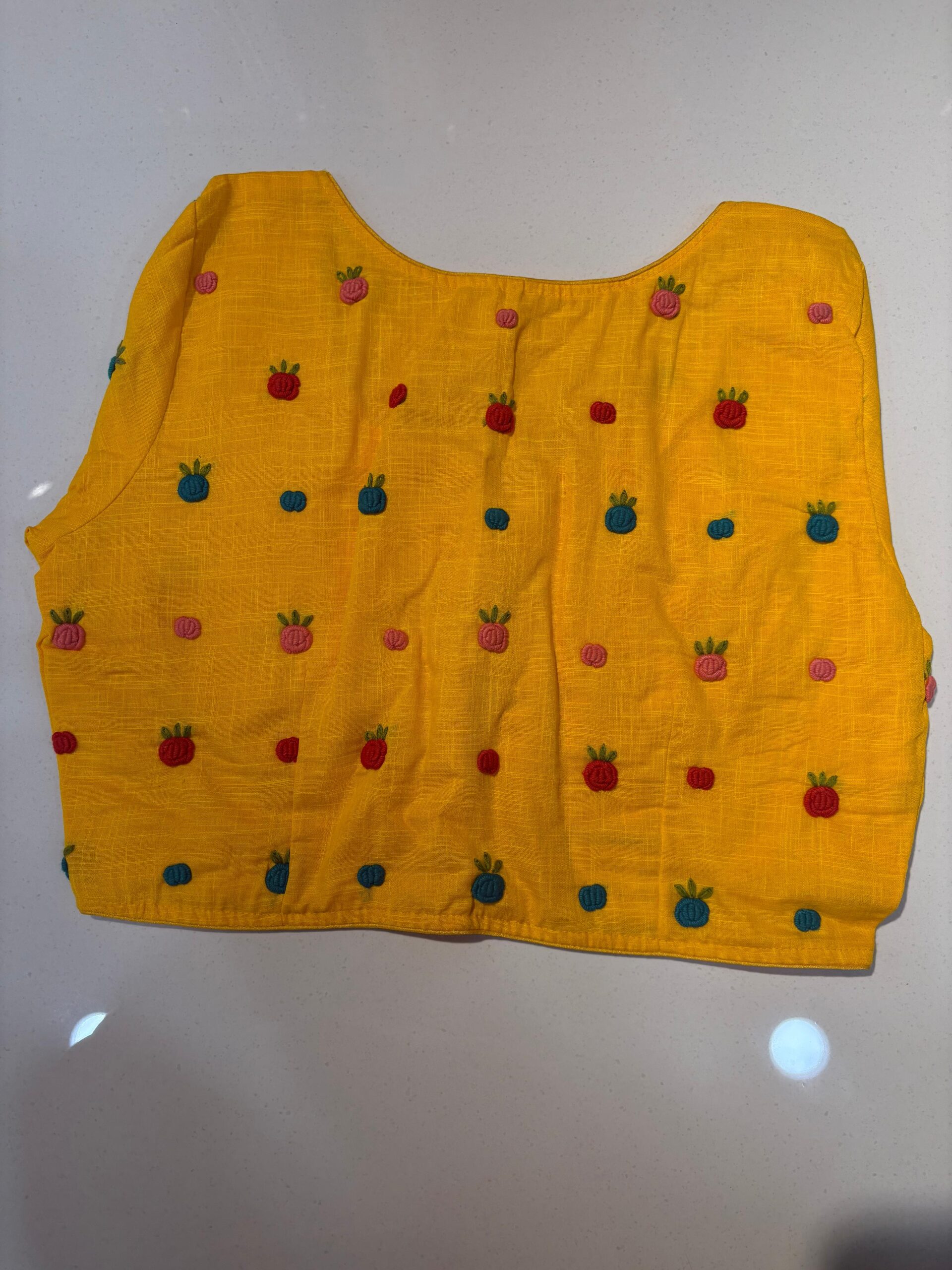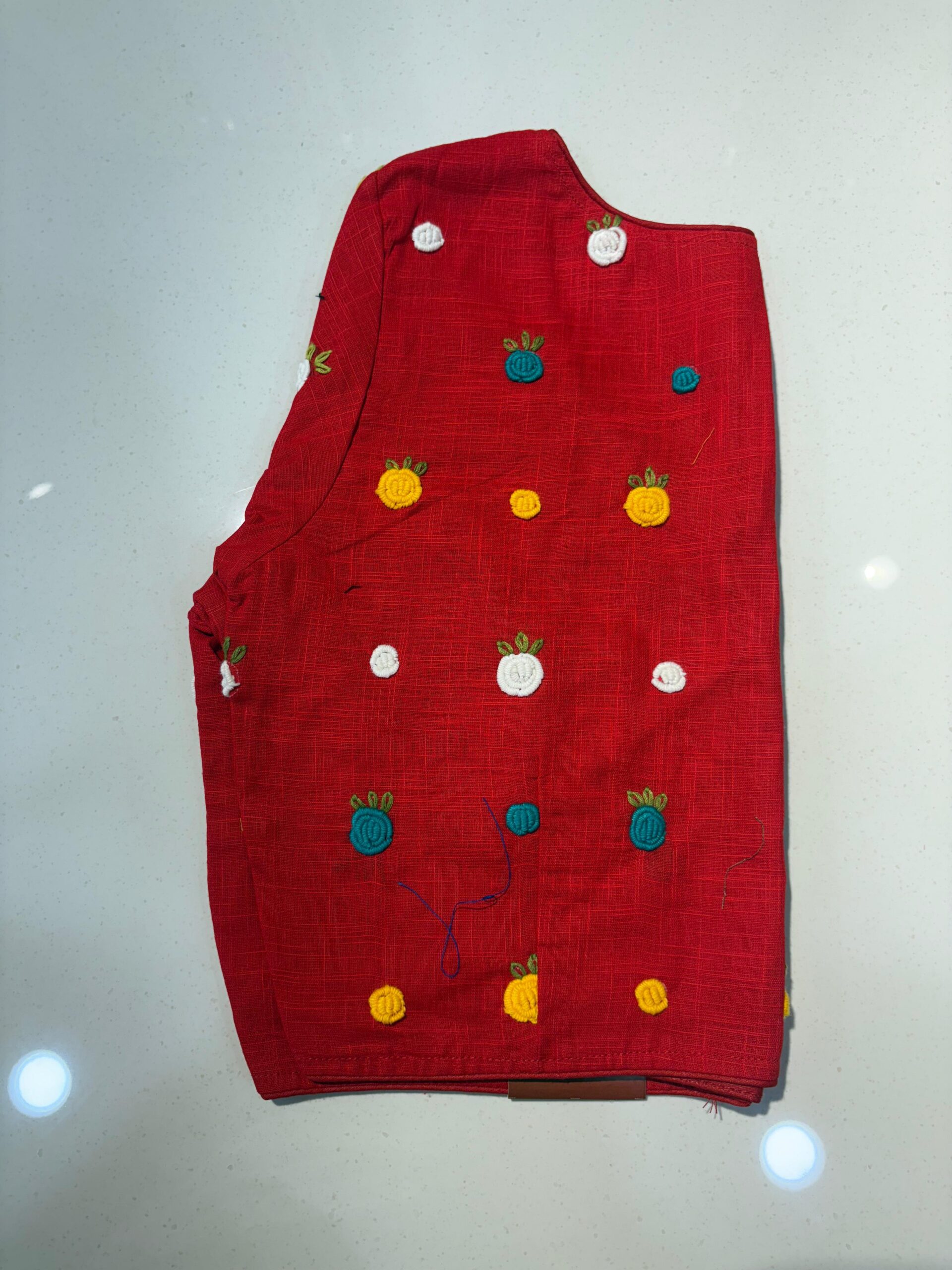 Styling Tip: Pair this blouse with a solid-colored linen saree and oxidized silver jewelry to let the hand-work truly shine. Comes in beautiful PRINCESS CUT.