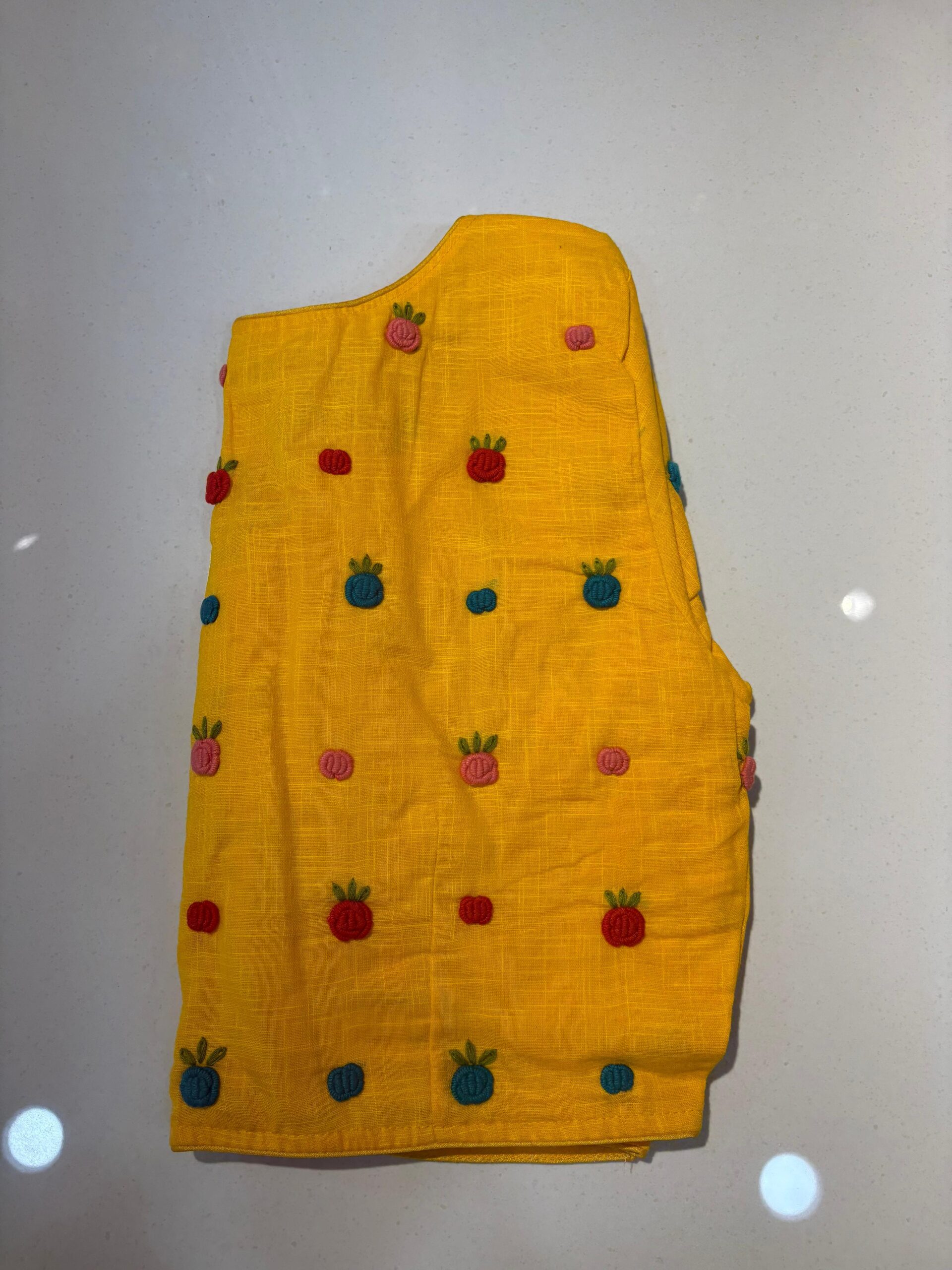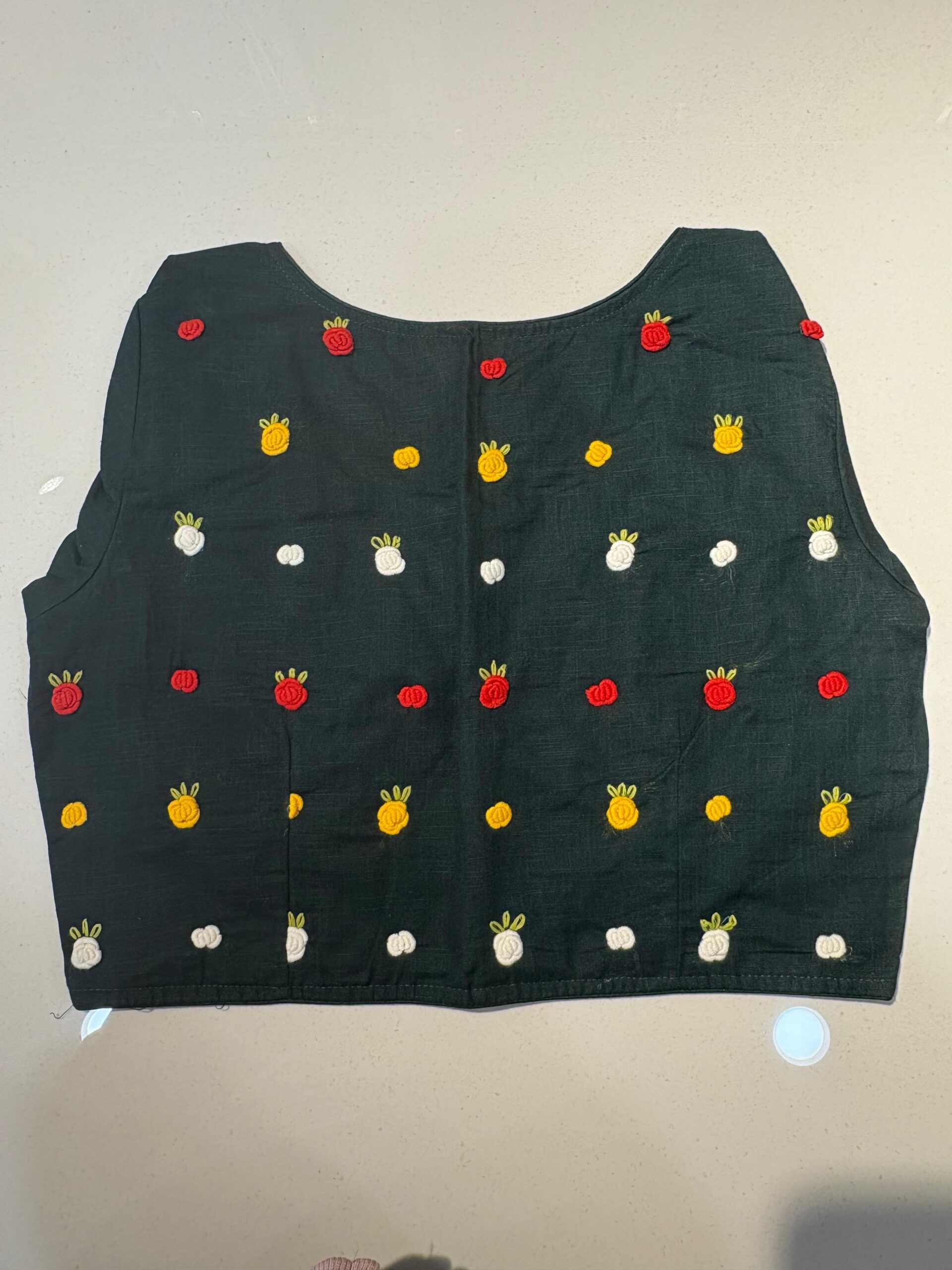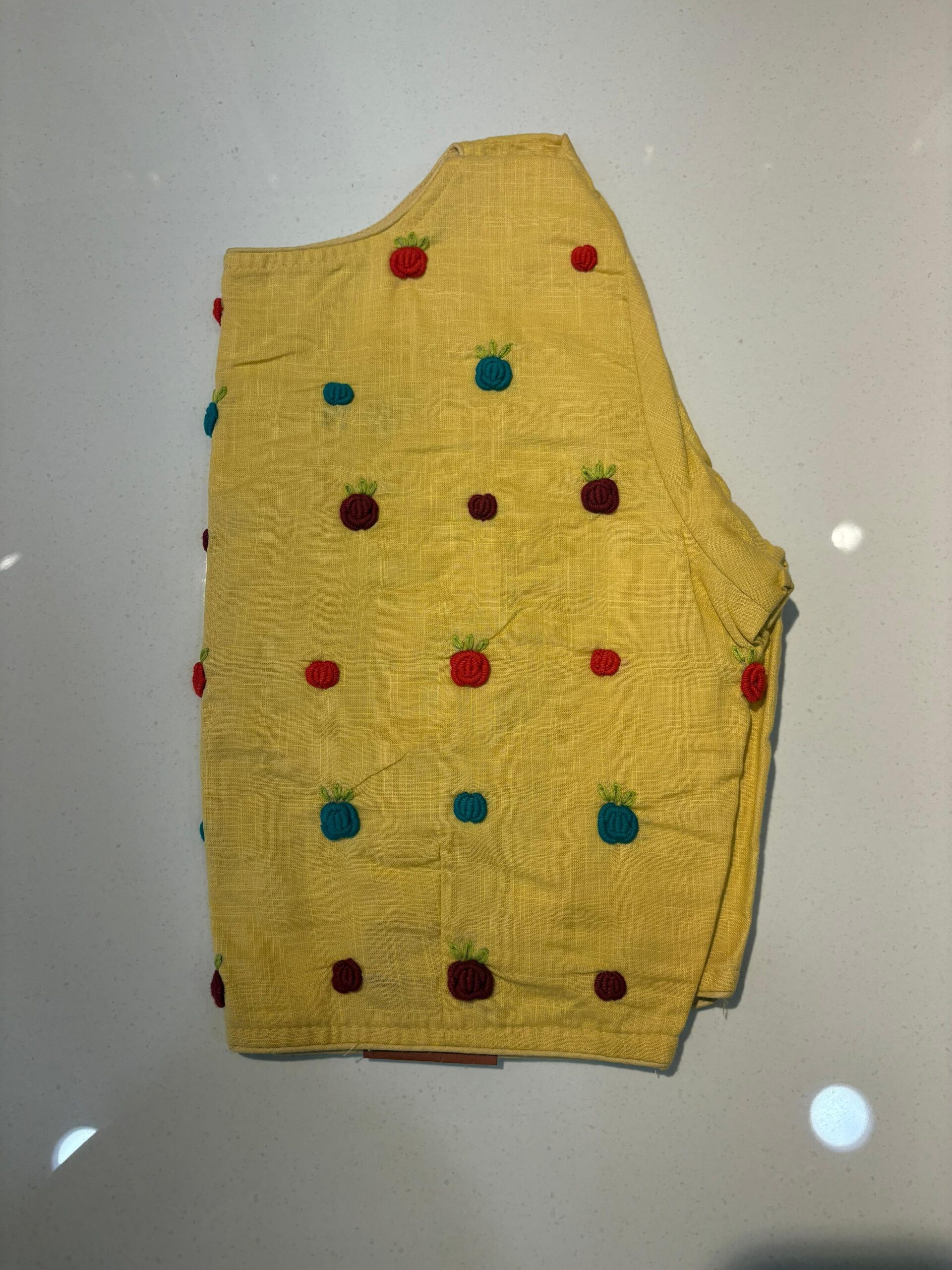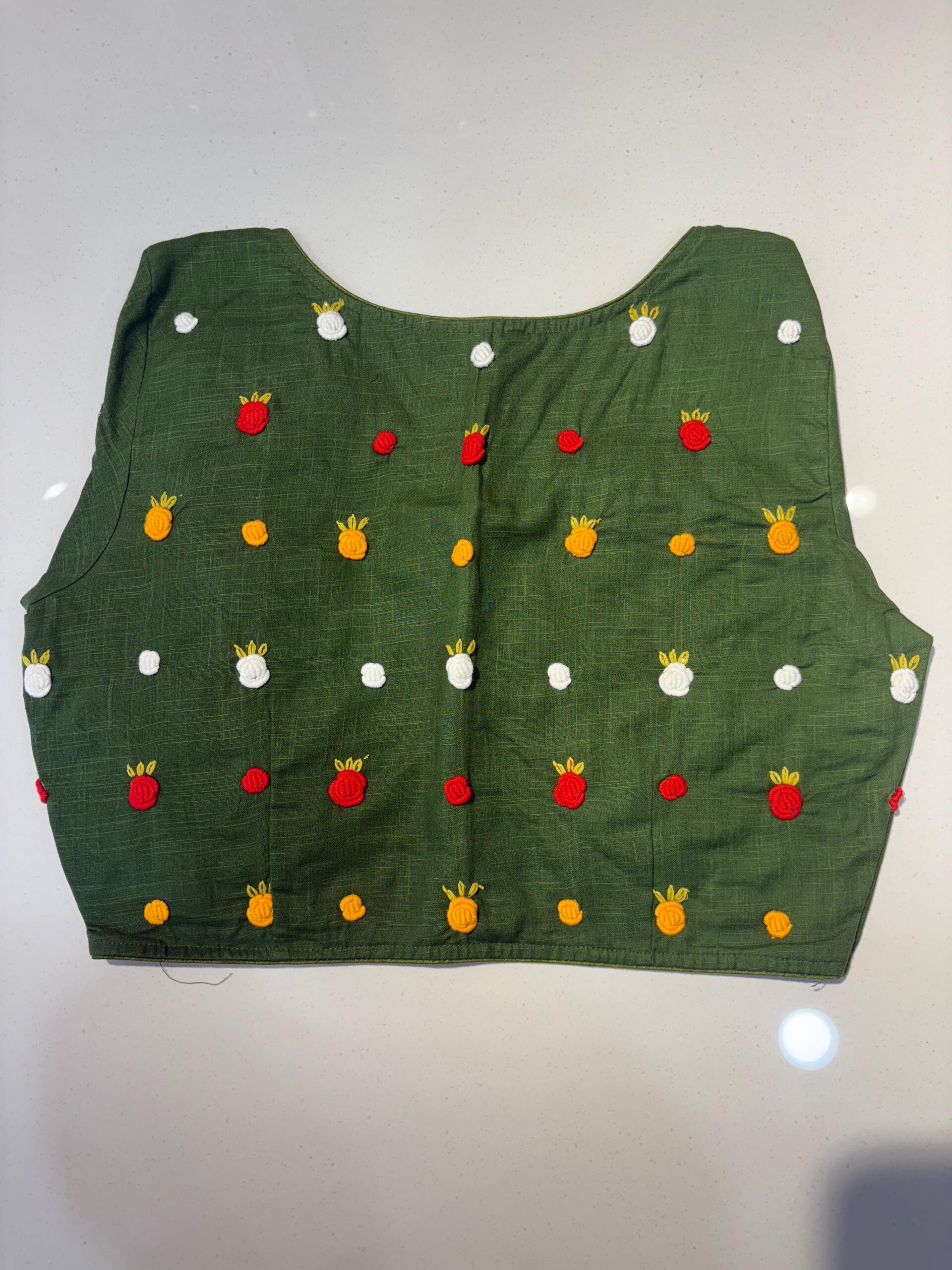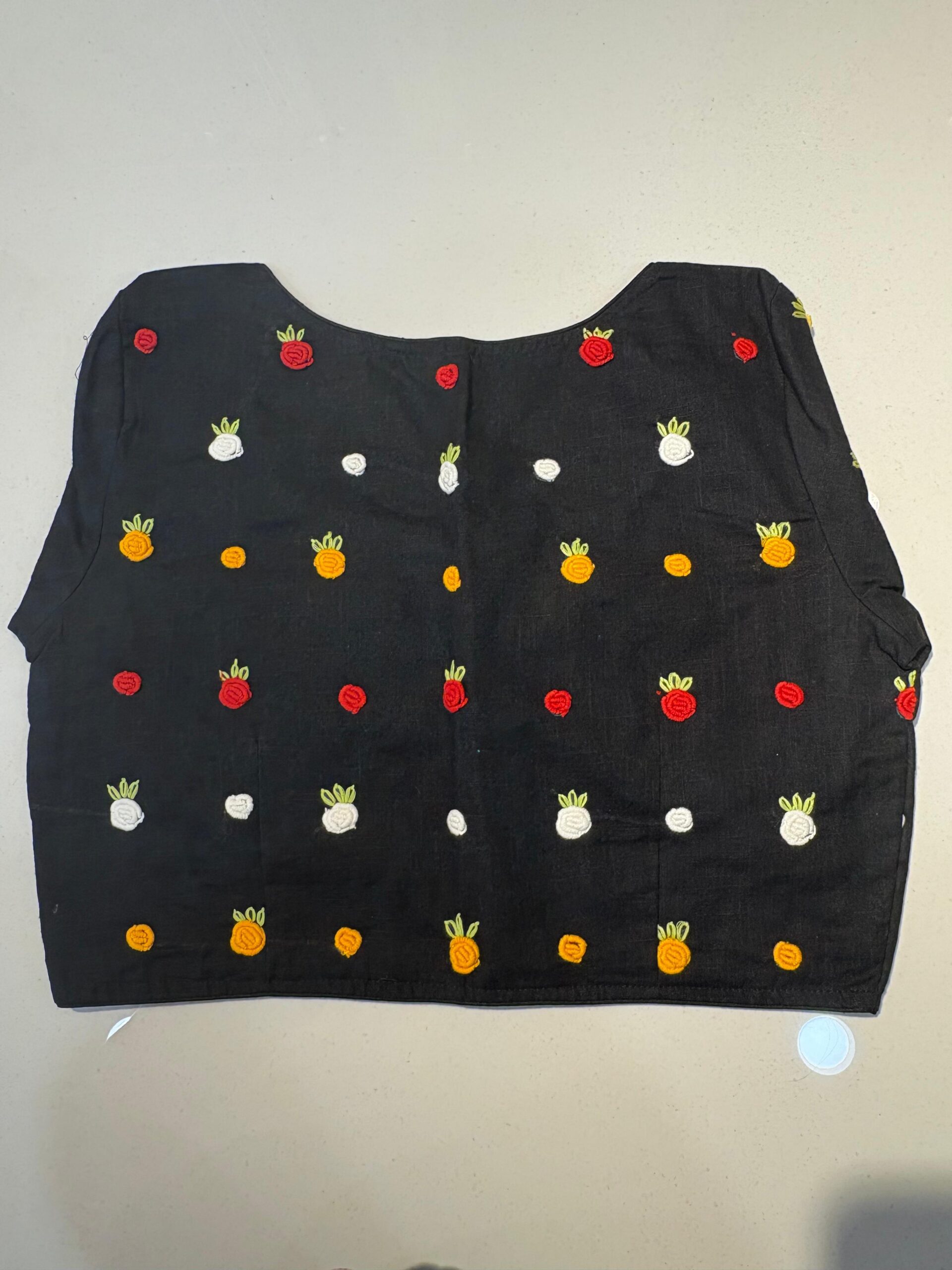 Styling Tip: Pair this blouse with a solid-colored linen saree and oxidized silver jewelry to let the hand-work truly shine. Comes in beautiful PRINCESS CUT.
