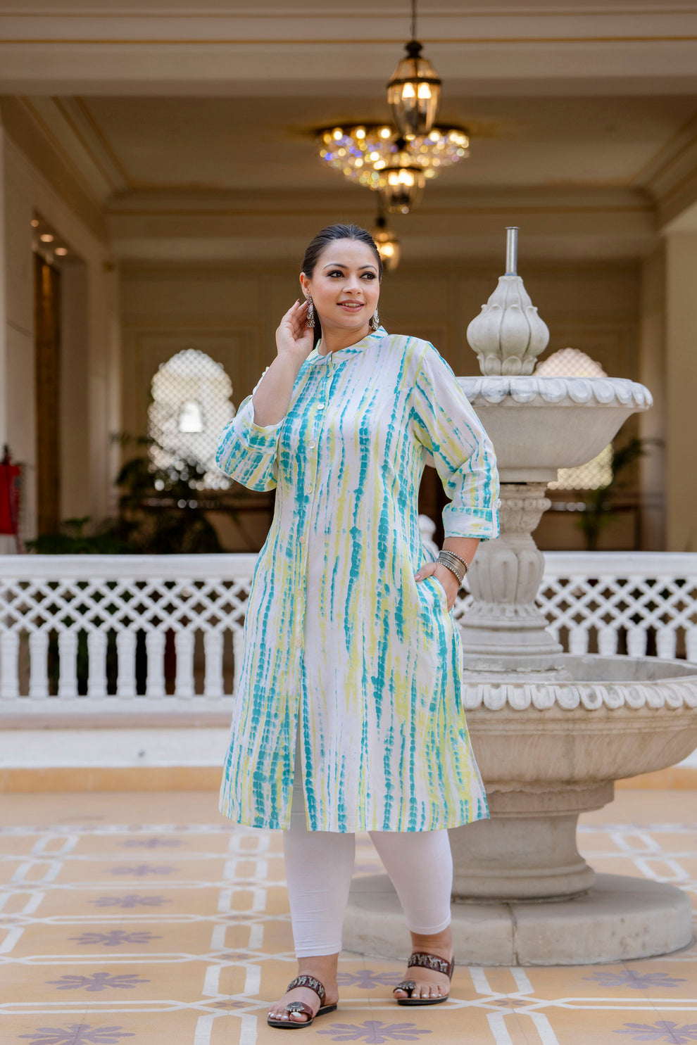 - Discharge Print Princess Cut Front Slit ‘A’ Line Kurta