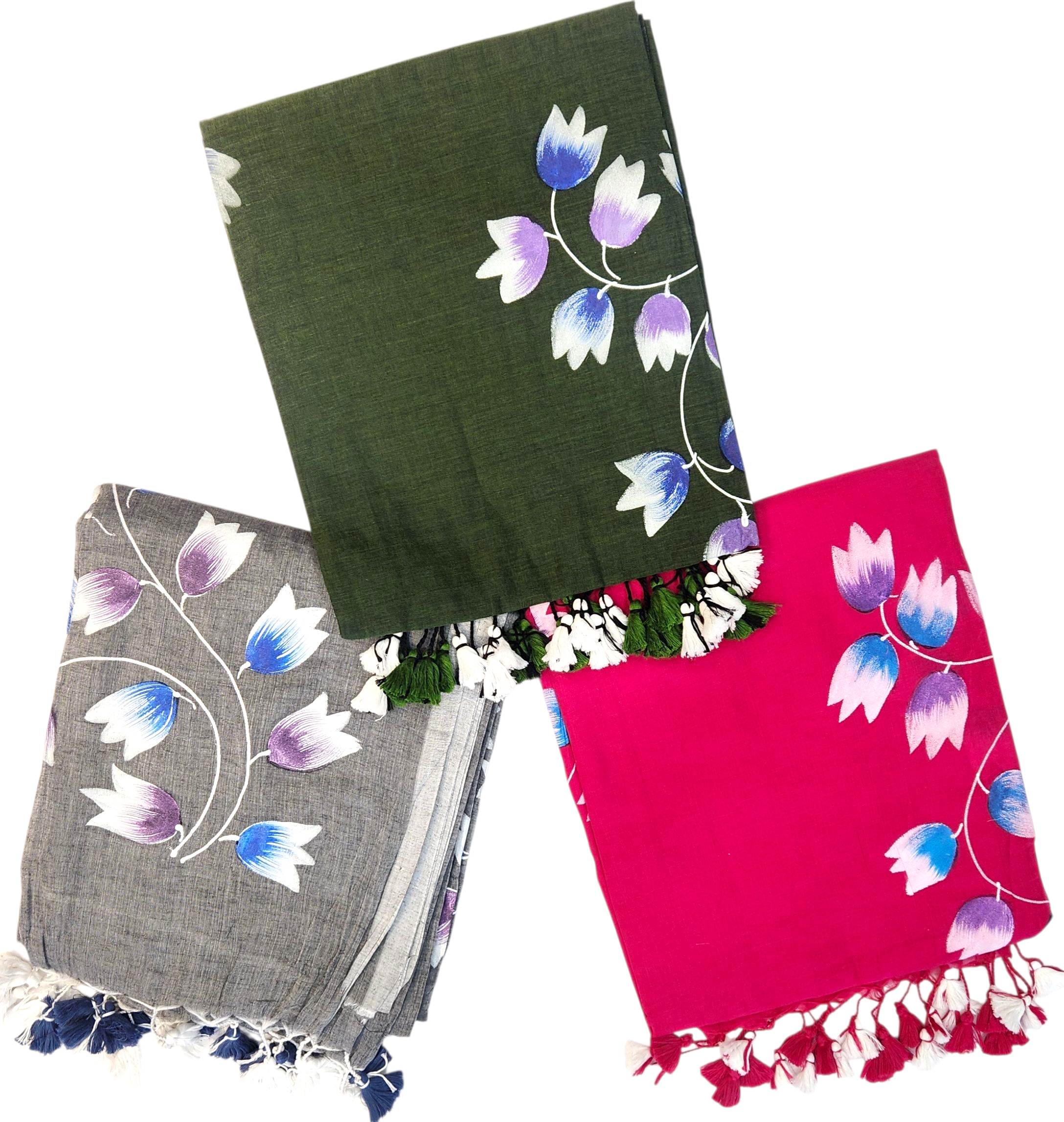 Wrap yourself in art with this beautifully handcrafted handloom mul cotton saree, adorned with delicate hand-brushed paint motifs. Each stroke brings alive the charm of floral inspirations on the soft, airy cotton fabric. The saree is lightweight, breathable, and drapes like a dream—perfect for daytime outings, casual gatherings, or soulful celebrations. A blend of comfort and creativity, this piece celebrates slow fashion and individual artistry.