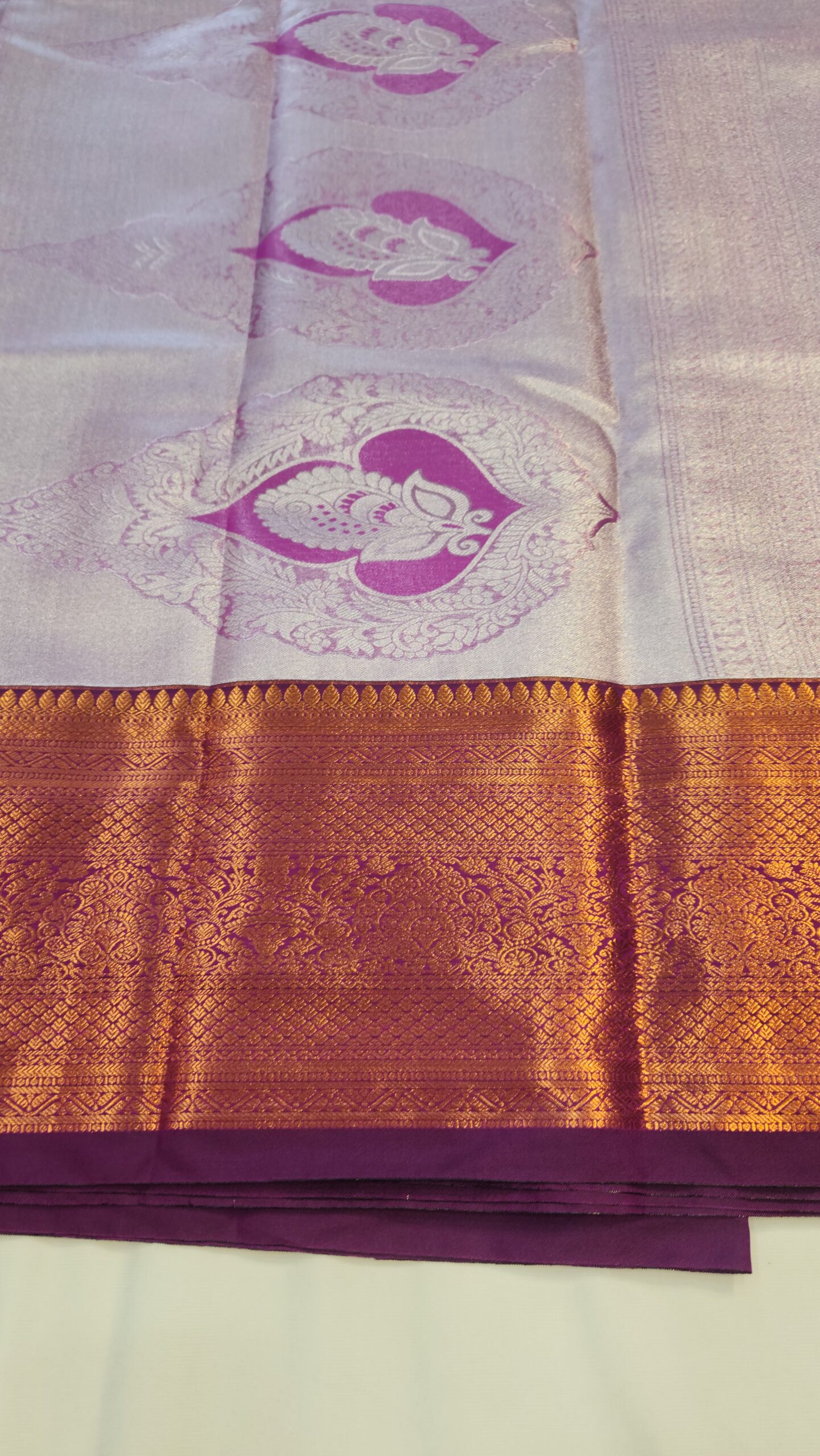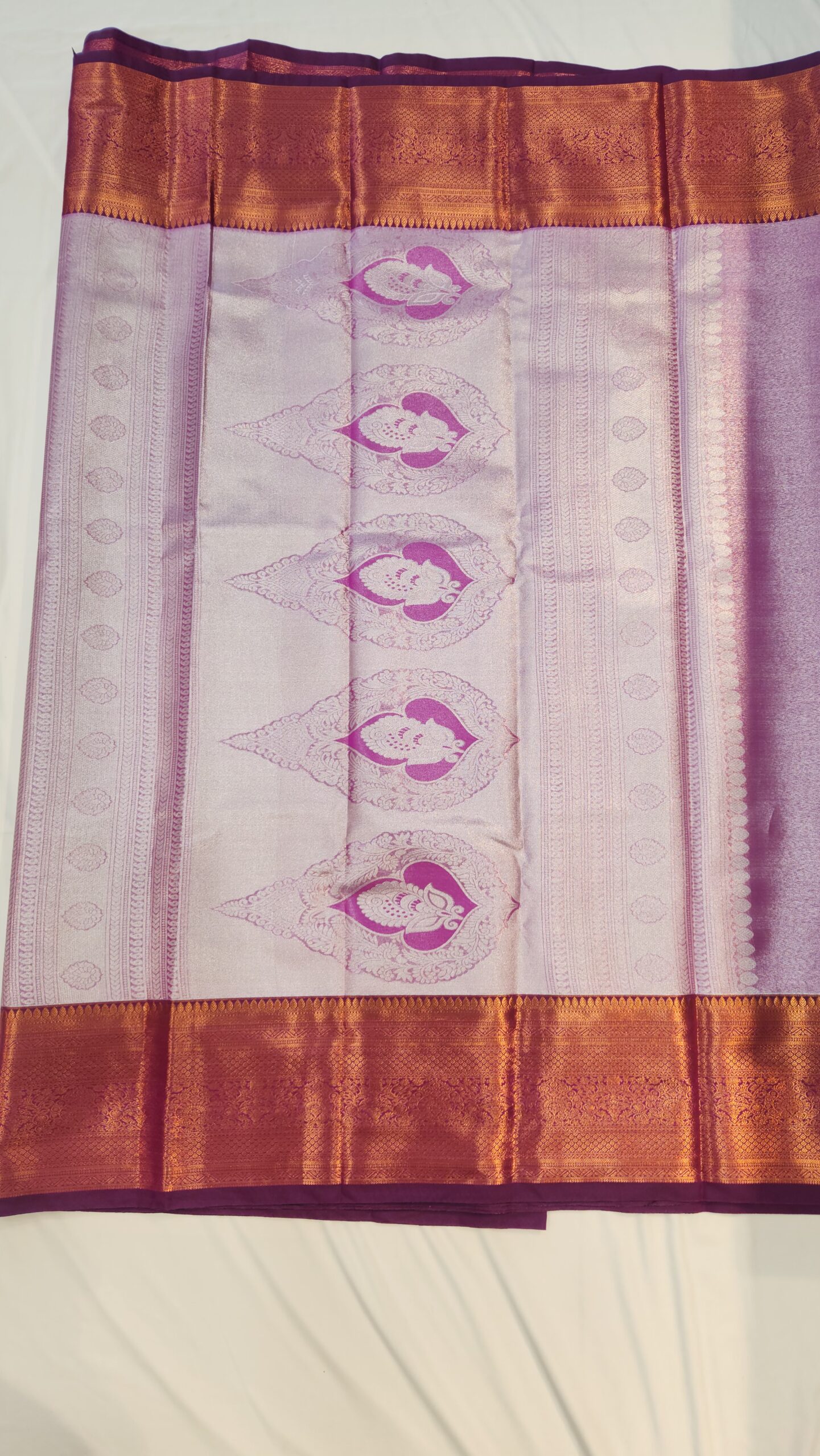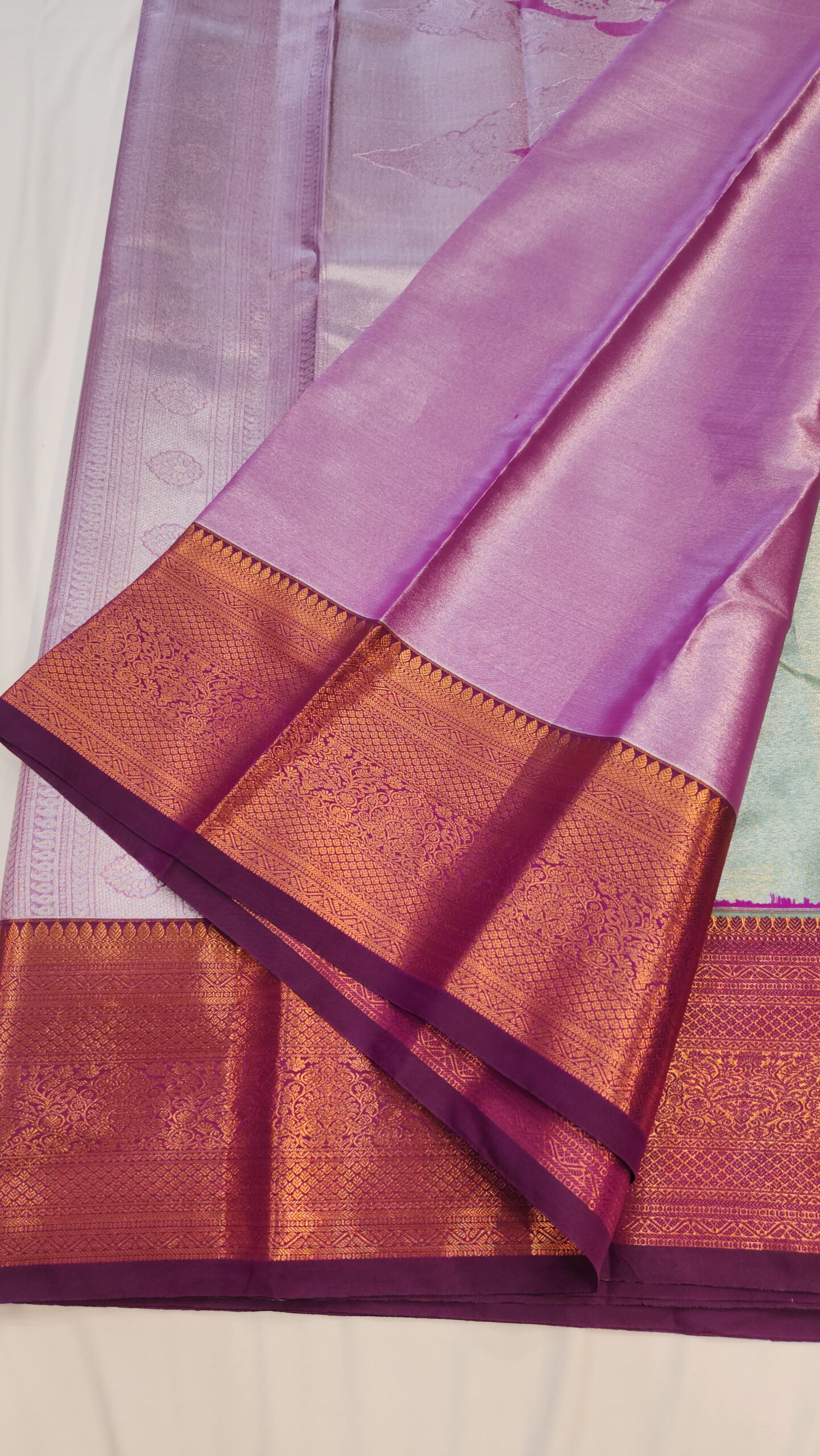 Step into timeless grandeur with this exquisite Heavy Brocade Kanchi Silk Saree, richly woven with intricate Meena work. A masterpiece of craftsmanship, this saree features luxurious silk threads interlaced with vibrant meenakari detailing, creating a tapestry of tradition and opulence. The heavy brocade body is adorned with elaborate floral and paisley motifs, perfectly complemented by a contrasting zari-woven pallu and an elegant blouse piece. Ideal for weddings, festive occasions, and special ceremonies, this saree is a regal addition to any ethnic wardrobe.