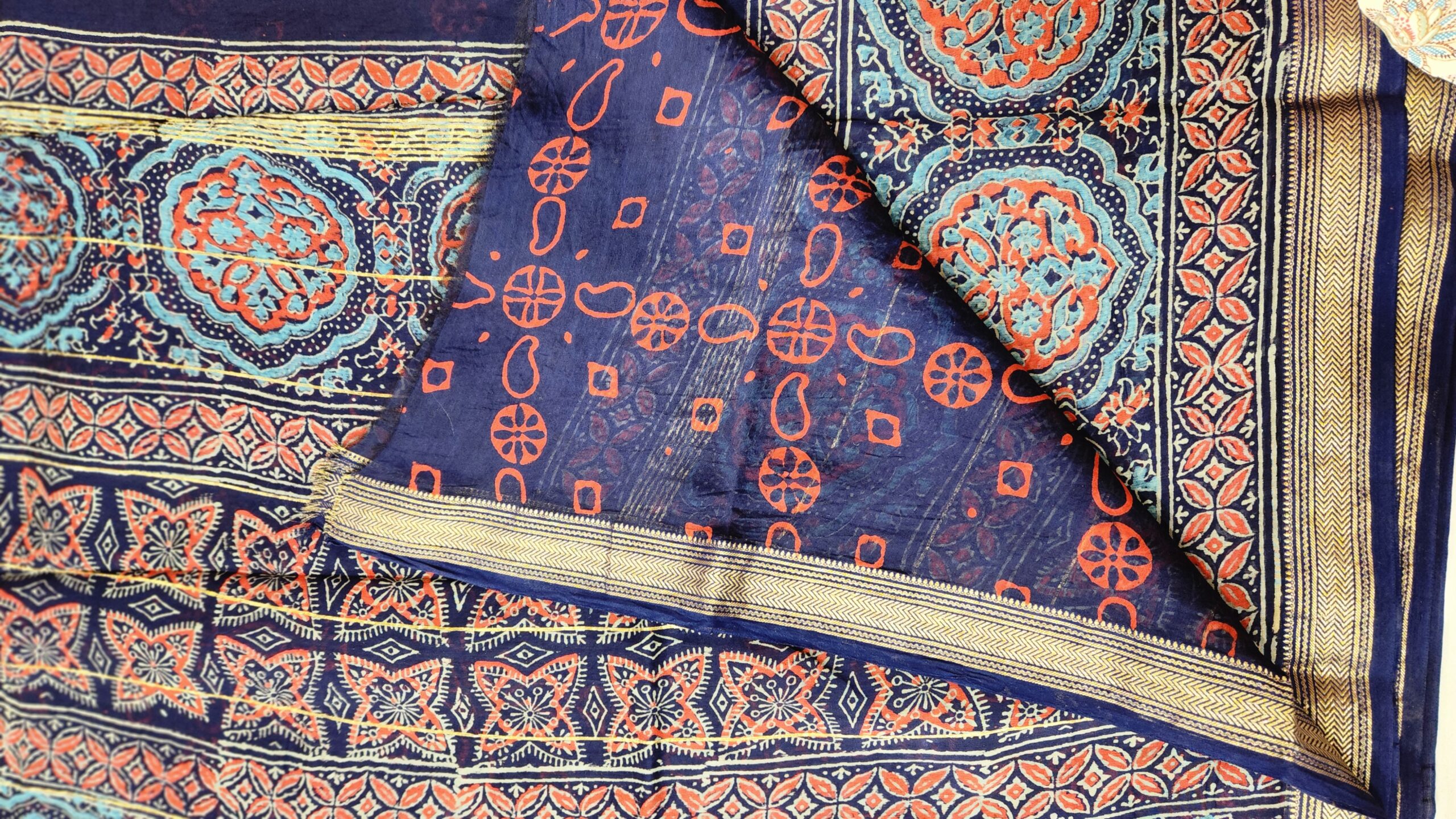 Maheswari silk with hand bagru print