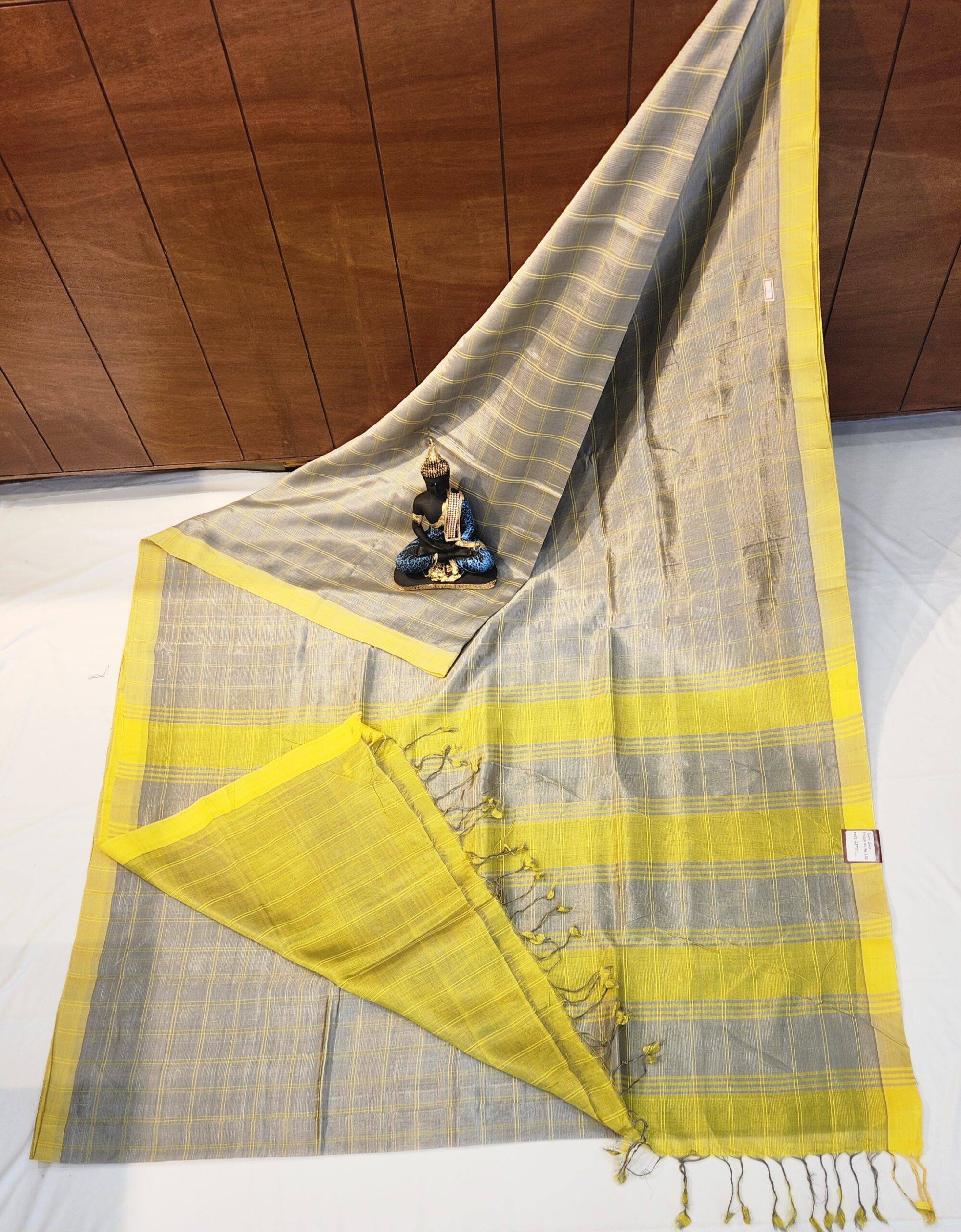 Elevate your ethnic wardrobe with this Mangalgiri Saree with thread checks, known for its rich texture and graceful drape. Featuring a vibrant contrast pallu and blouse, this saree blends traditional craftsmanship with a striking color play. The natural sheen of Mangalgiri silk adds a refined charm, making it ideal for festive and formal occasions.