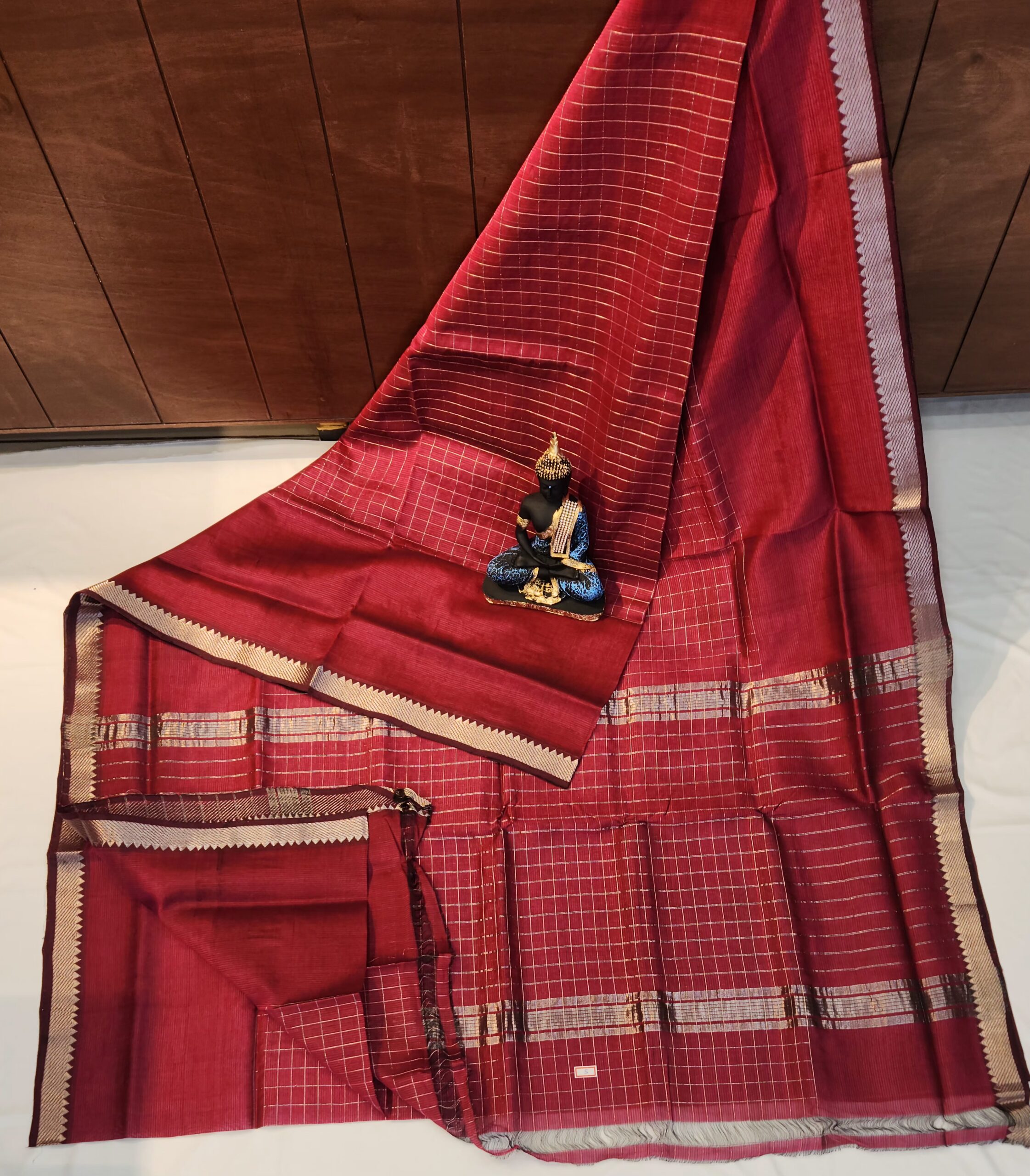 Mangalgiri Silk checks saree with temple kanchi border
