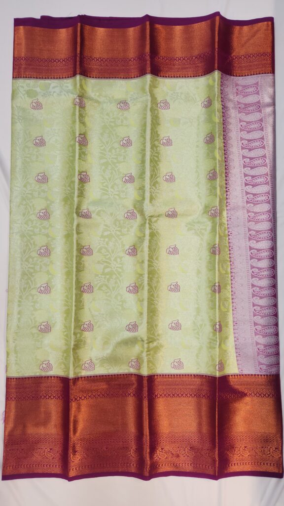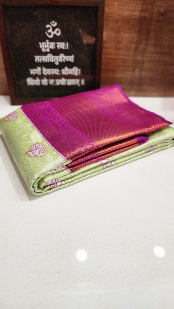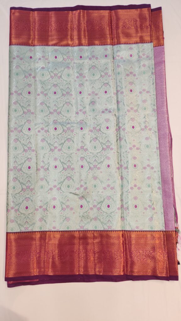 Mangalgiri Silk Saree with Contrast Pallu and Thread Temple Border