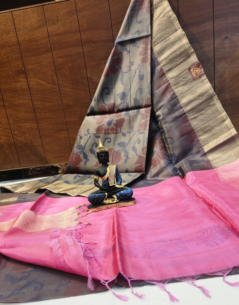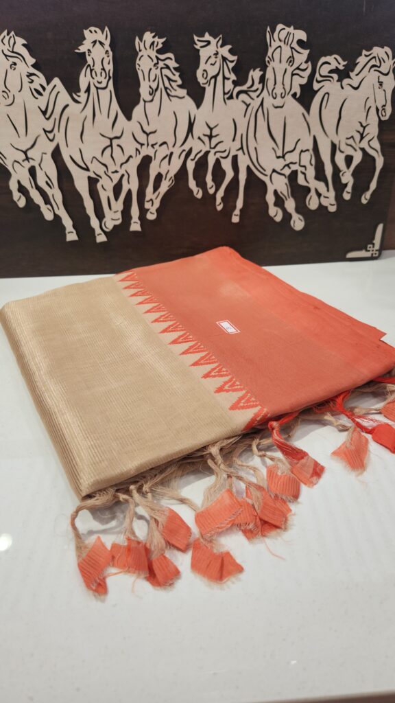 Gracefully handwoven in the heart of Andhra Pradesh, this Mangalgiri silk saree is a celebration of tradition and craftsmanship. Crafted from fine silk, it features a beautifully contrasting pallu that adds depth and drama. The standout element—the intricate thread temple border—enhances its elegance, making it perfect for festive occasions and intimate celebrations. Lightweight, lustrous, and timeless, this saree drapes like a dream.