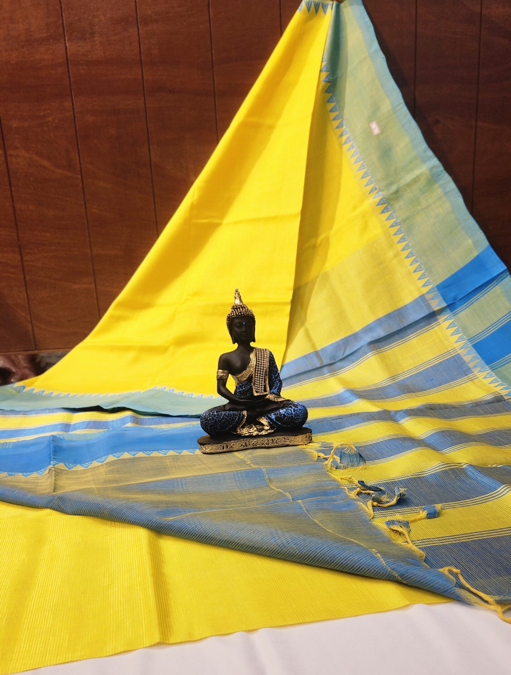 Mangalgiri Silk Saree with Contrast Pallu and Thread Temple Border
