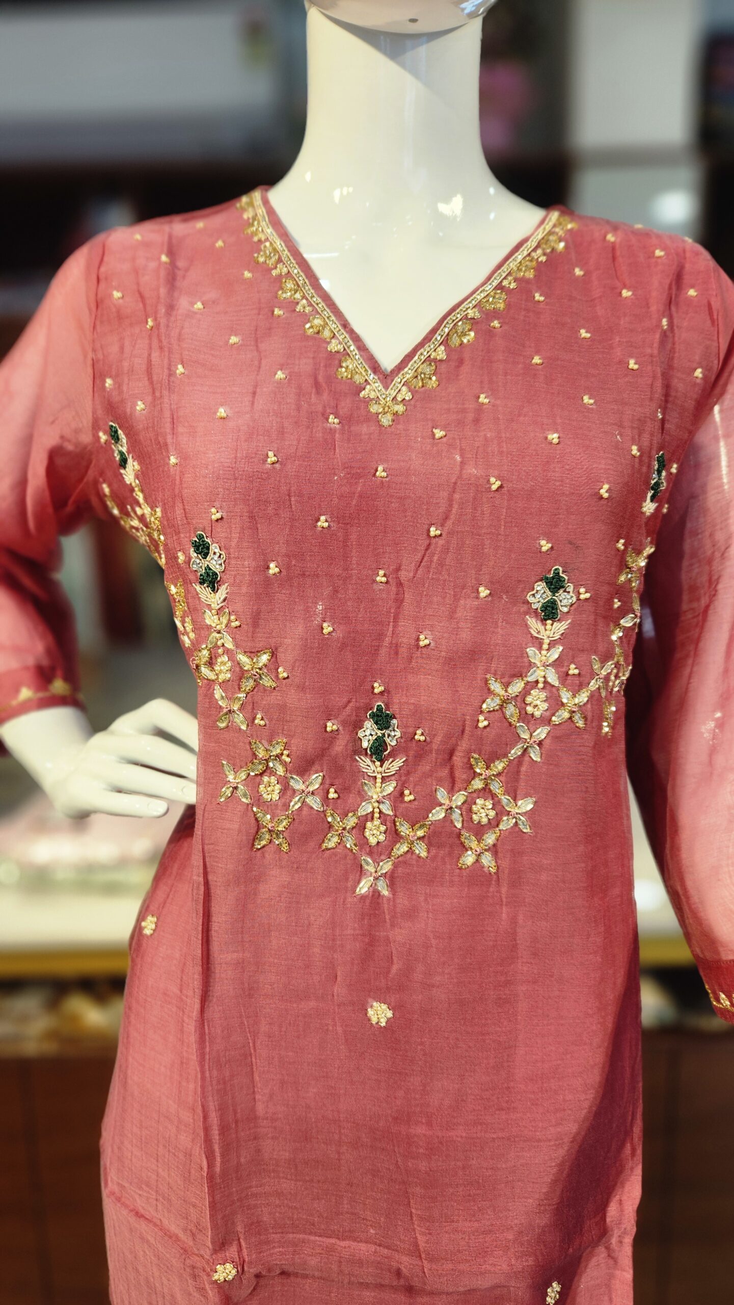 Celebrate the charm of traditional Indian craftsmanship with this elegant Mul Chanderi Ethnic Suit. Woven from the finest mul (soft) chanderi fabric, this suit combines lightweight comfort with a regal sheen, perfect for festive gatherings and cultural celebrations.