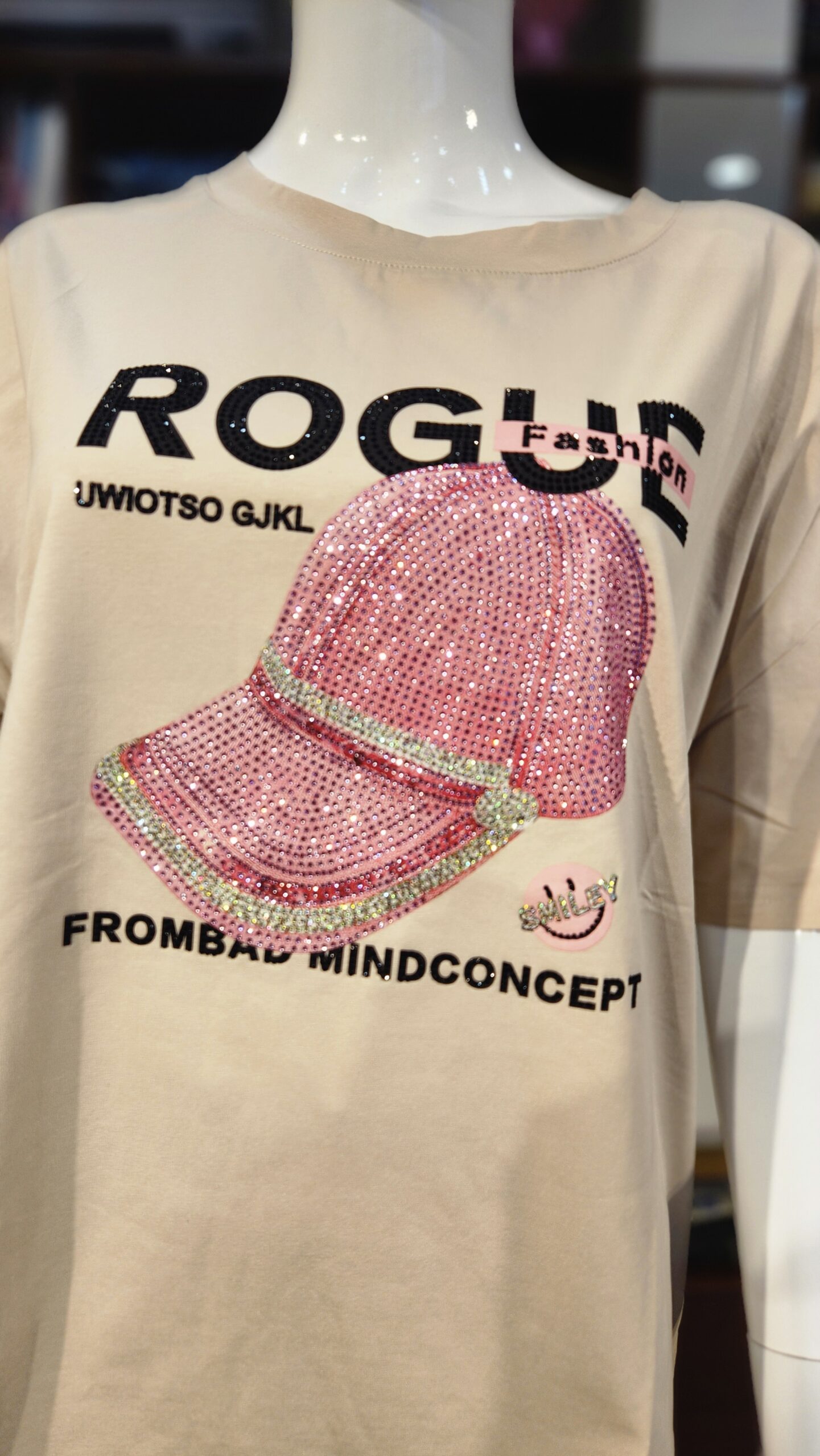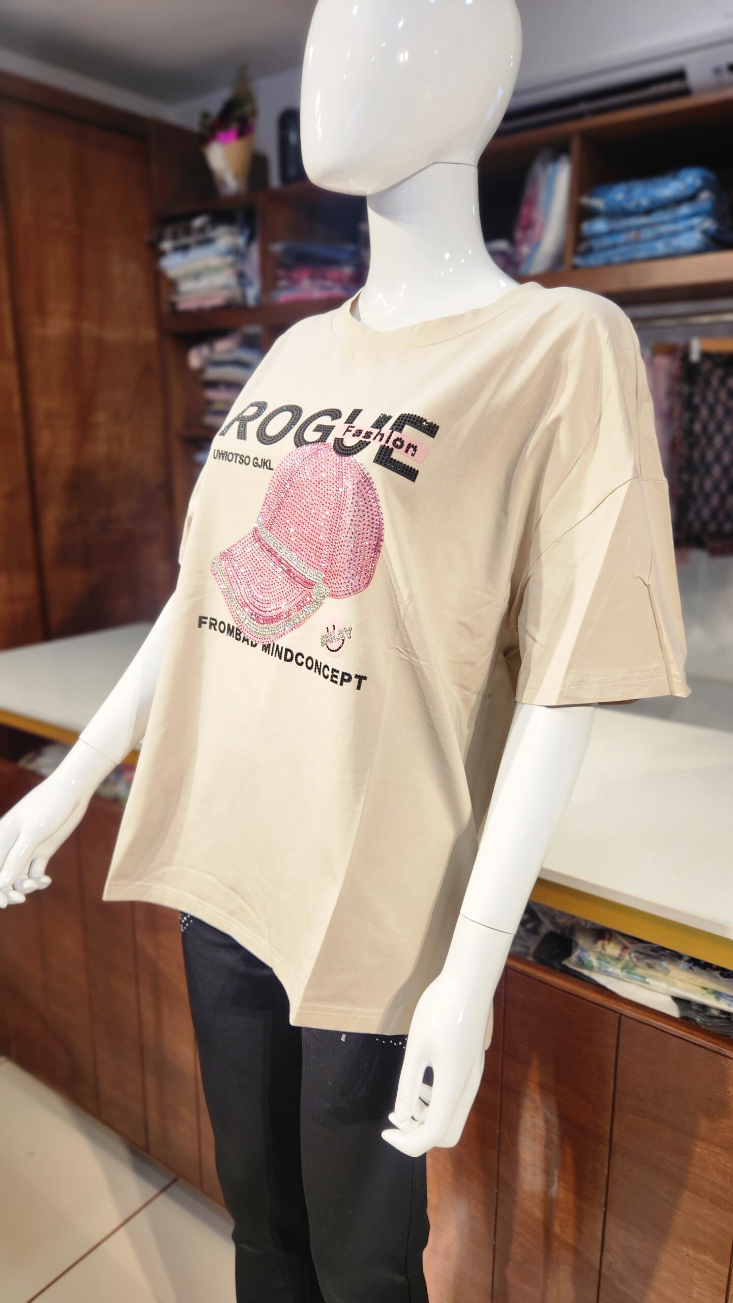 Style: Drop shoulders, round neck, studded graphic print