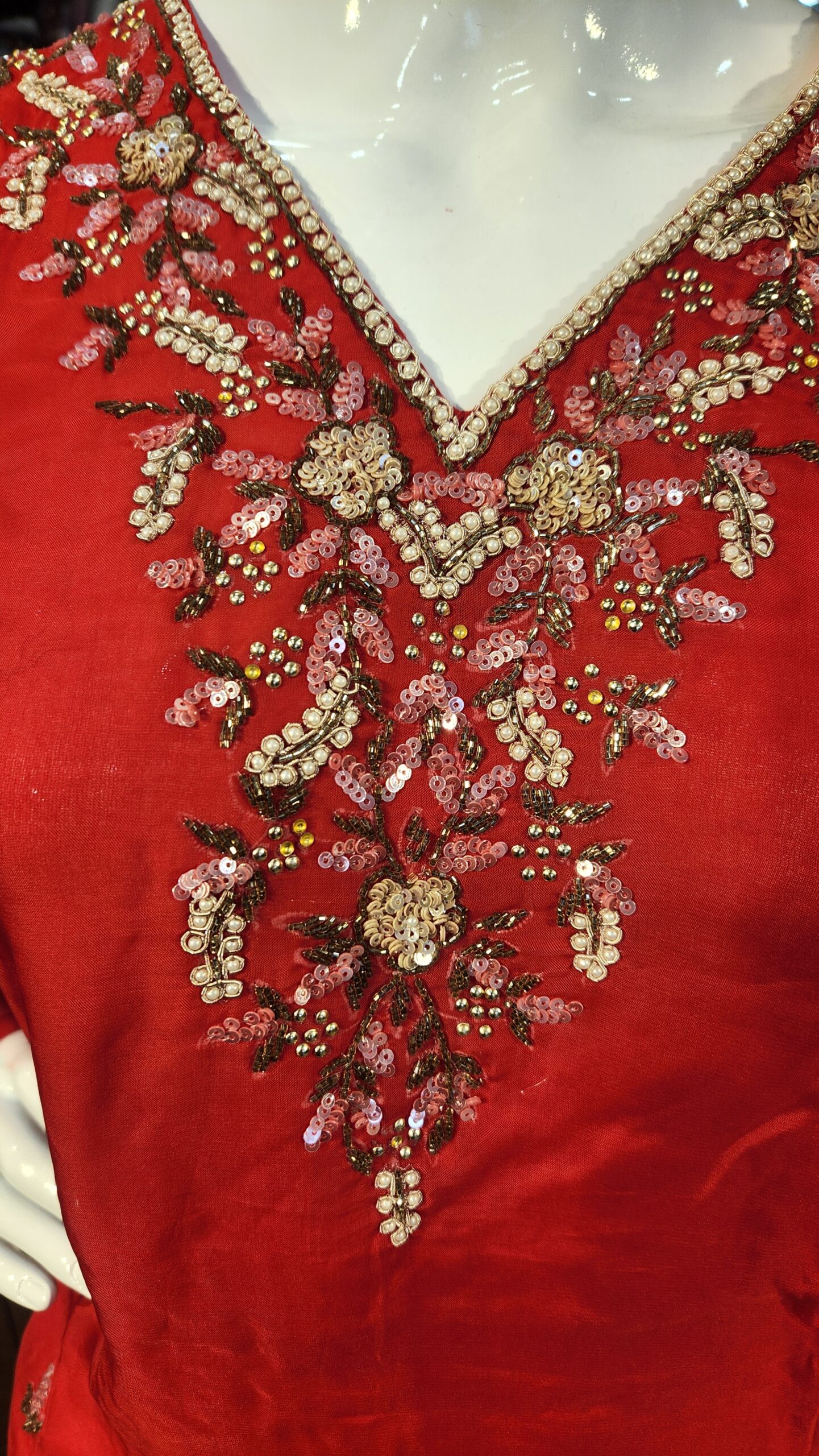 tricate hand embroidery with zari, thread, and sequins work