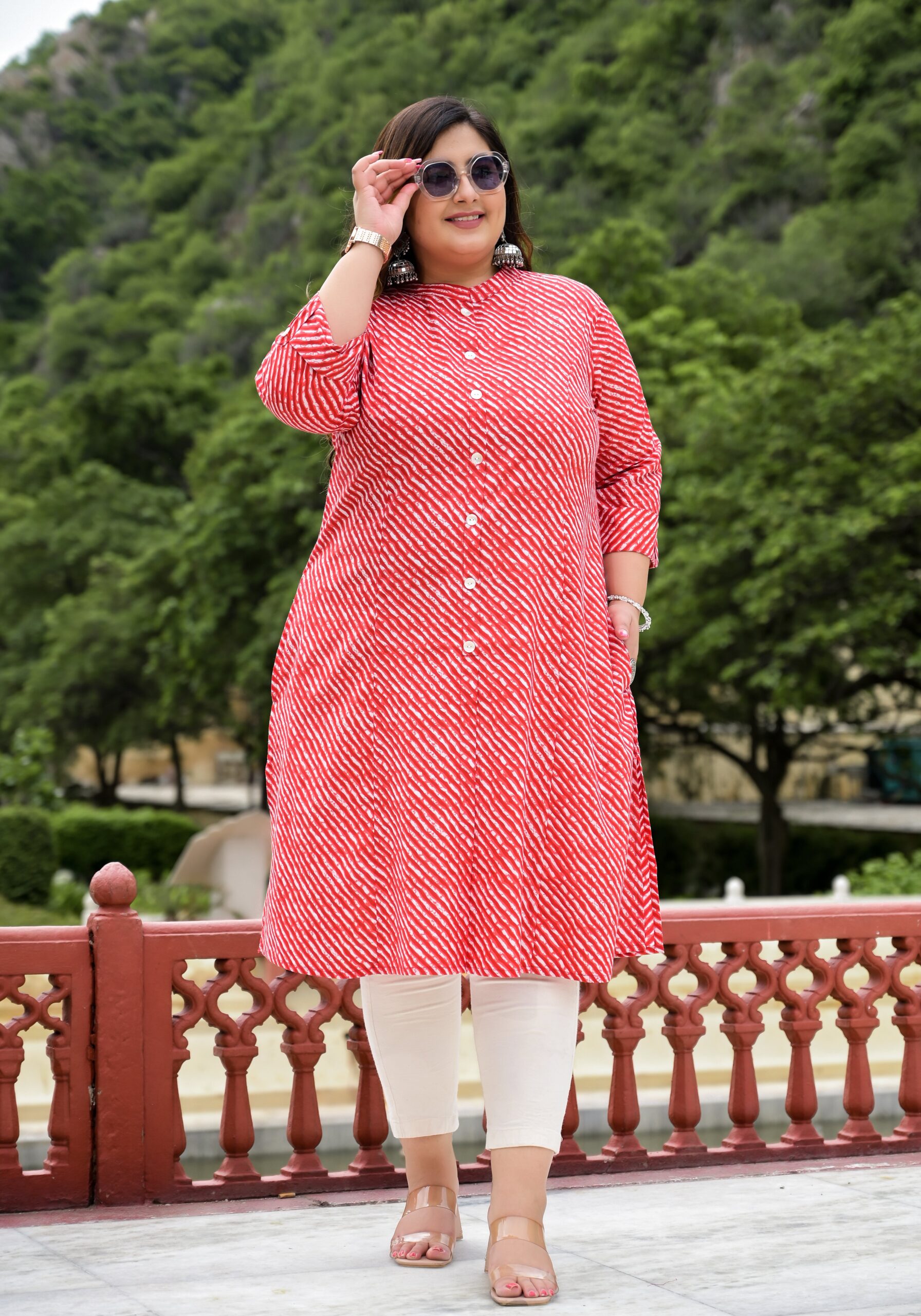 Pure cotton Lehriya Front Slit ‘A’ Line Kurta