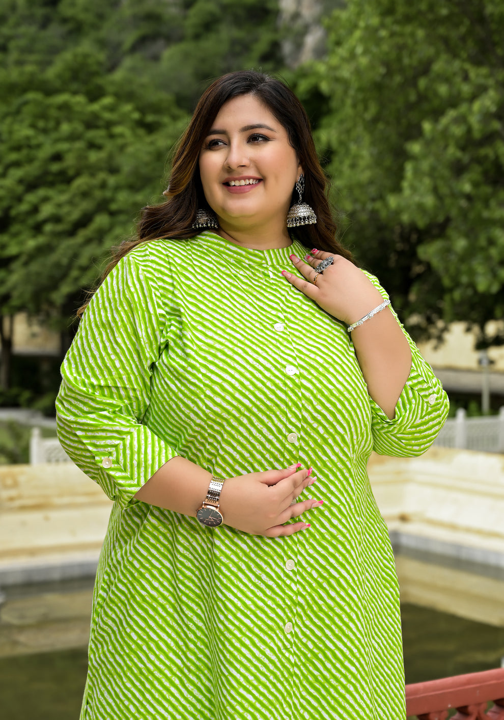 Pure cotton Lehriya Front Slit ‘A’ Line Kurta