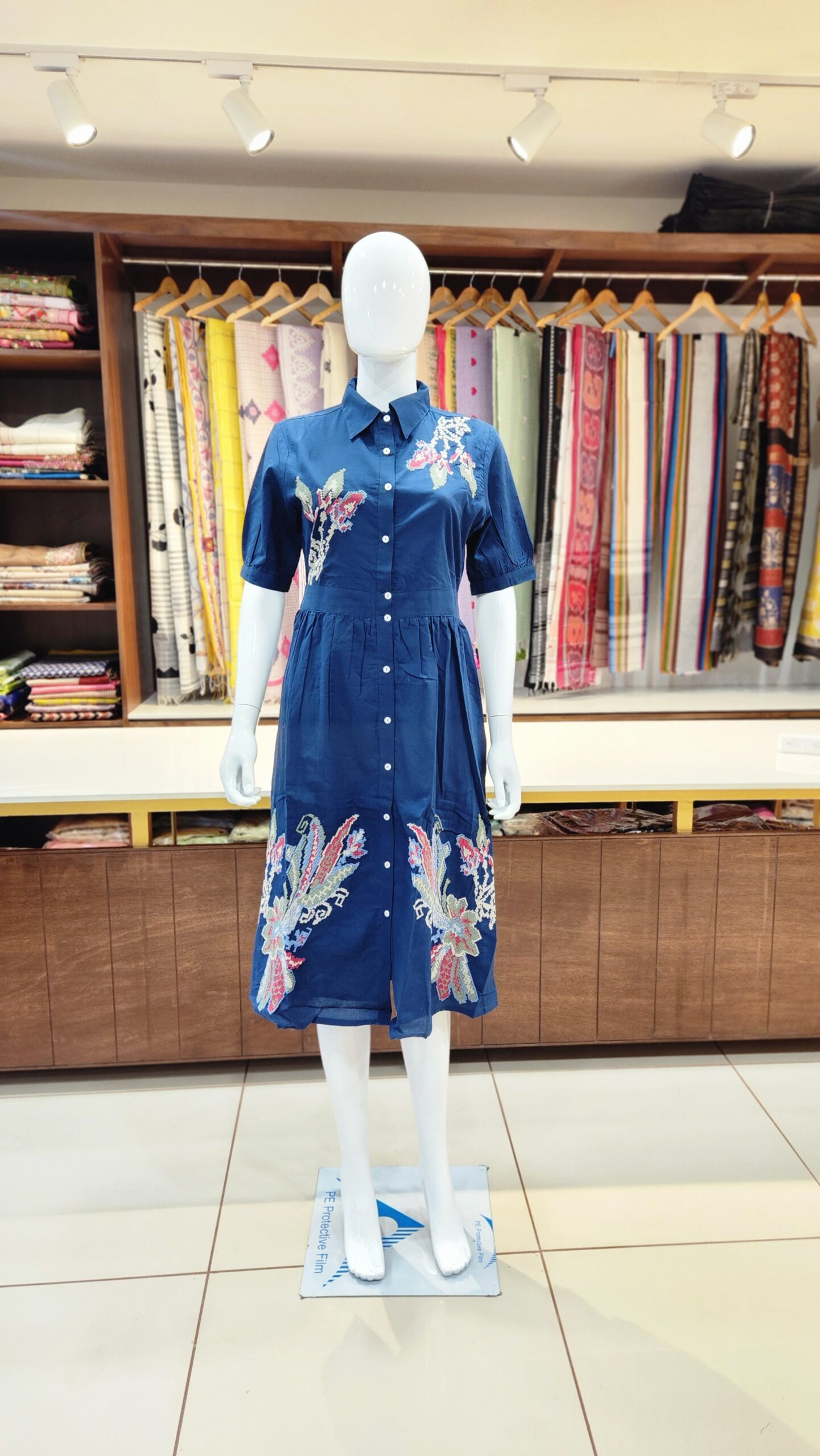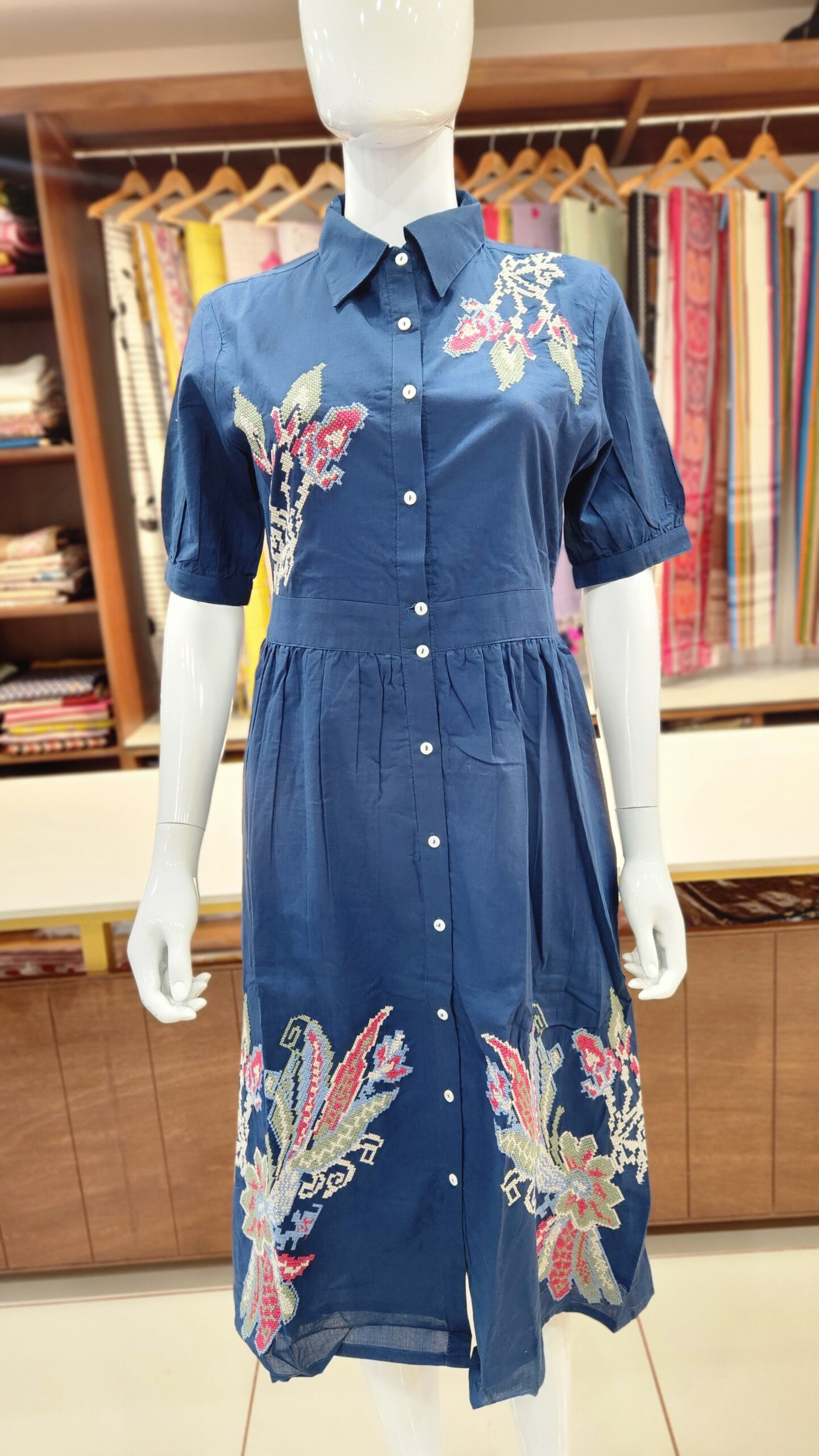 Pure cotton midi dress with fine embroidery—comfortable, breezy, and effortlessly stylish.