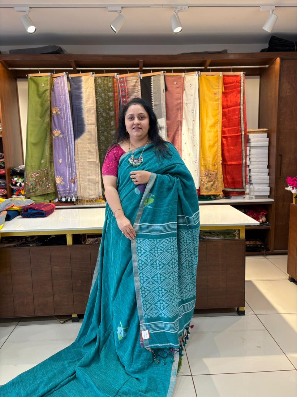 Embrace the breathable luxury of our authentic Handloom Linen Saree. Woven from the finest natural flax fibers, this saree is a testament to timeless grace and contemporary comfort. The fabric’s organic texture offers a soft, cooling sensation against the skin, making it an effortless choice for long days or humid climates.