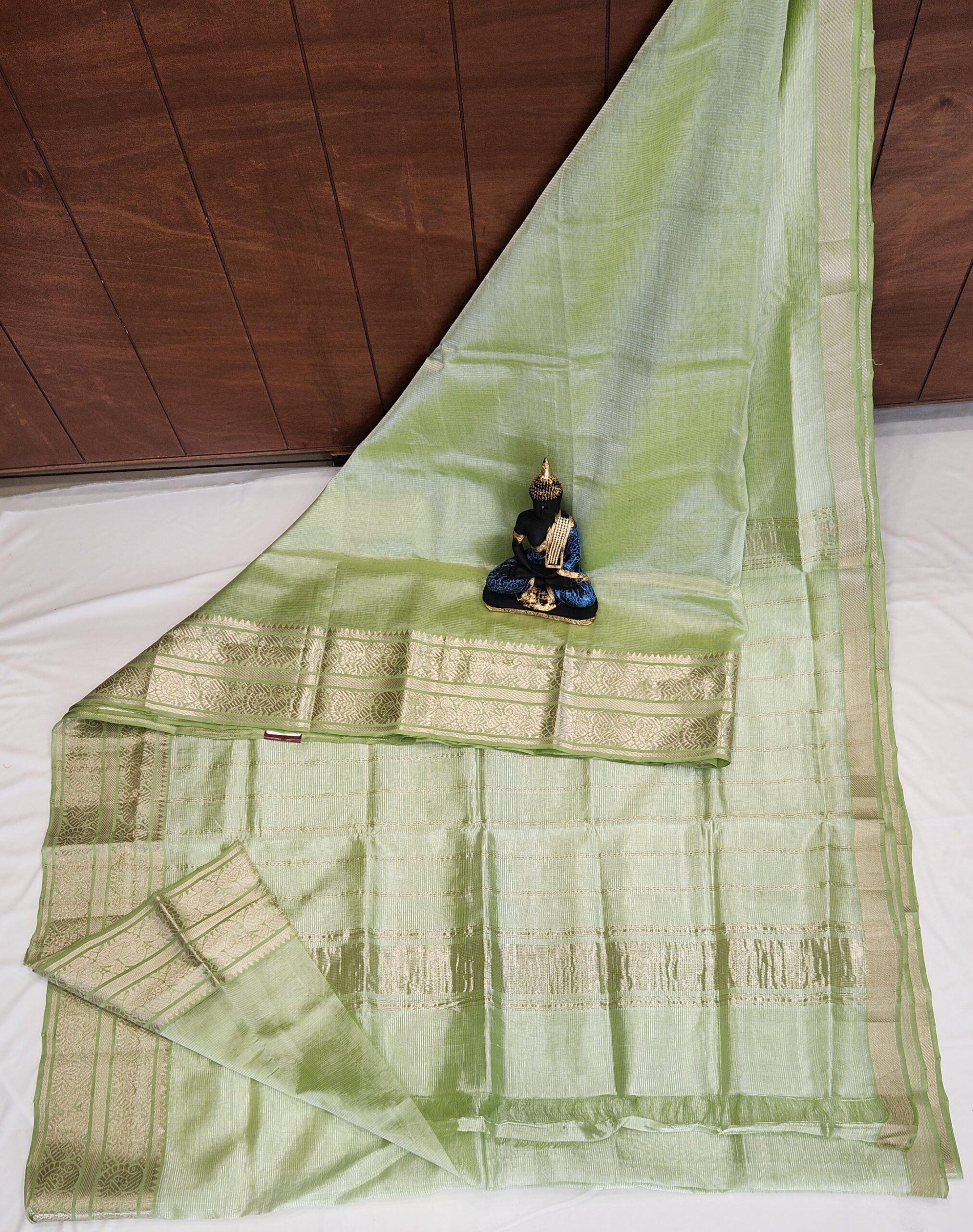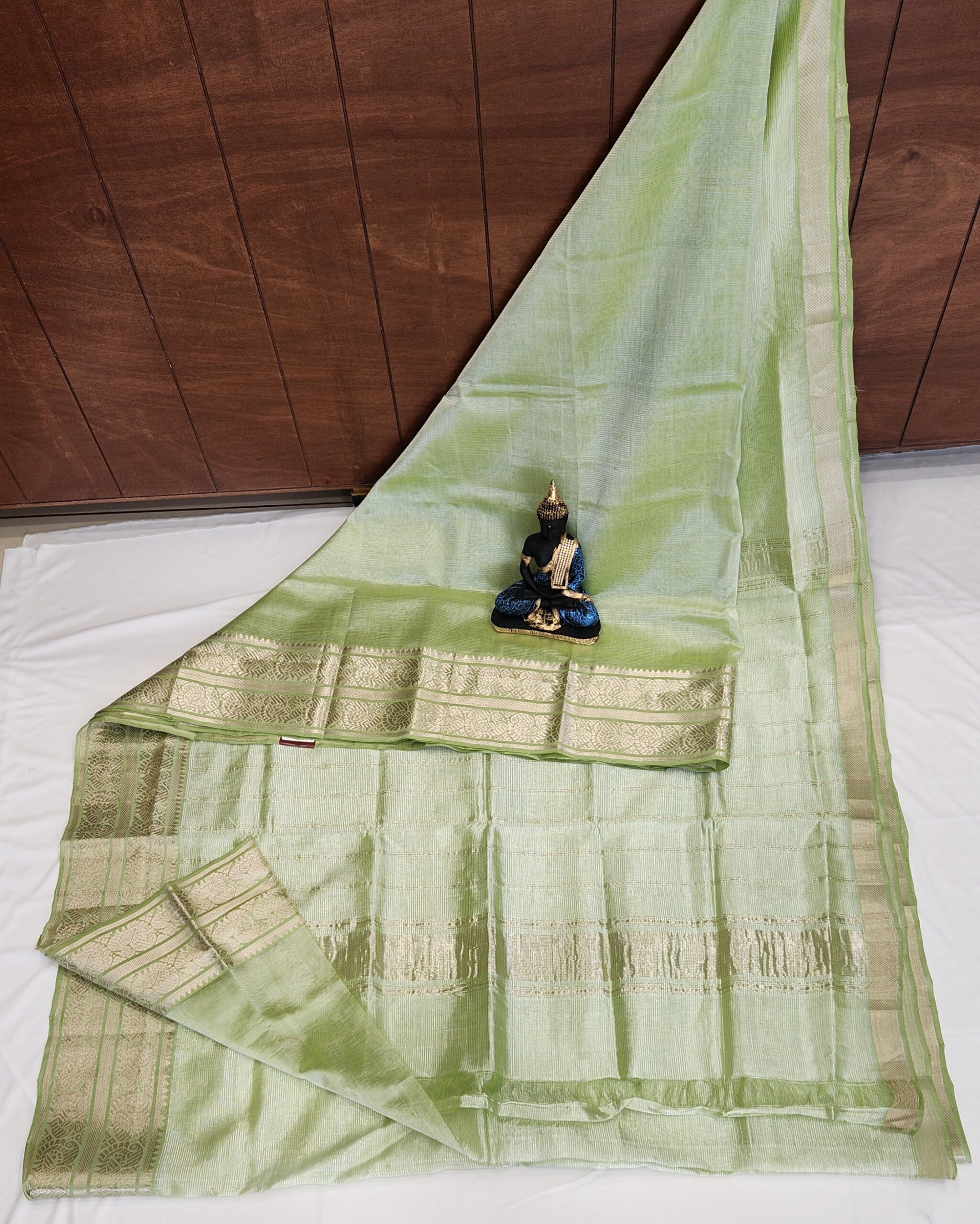 Elevate your ethnic wardrobe with this Pure Mangalgiri Silk Saree adorned with a majestic Kanchi border. Handwoven in the heritage town of Mangalgiri, this saree blends the soft, lightweight texture of pure silk with the grandeur of traditional Kanchipuram-style zari borders. The subtle sheen, rich contrast pallu, and finely crafted blouse piece make it a perfect choice for weddings, festivities, and graceful gatherings.