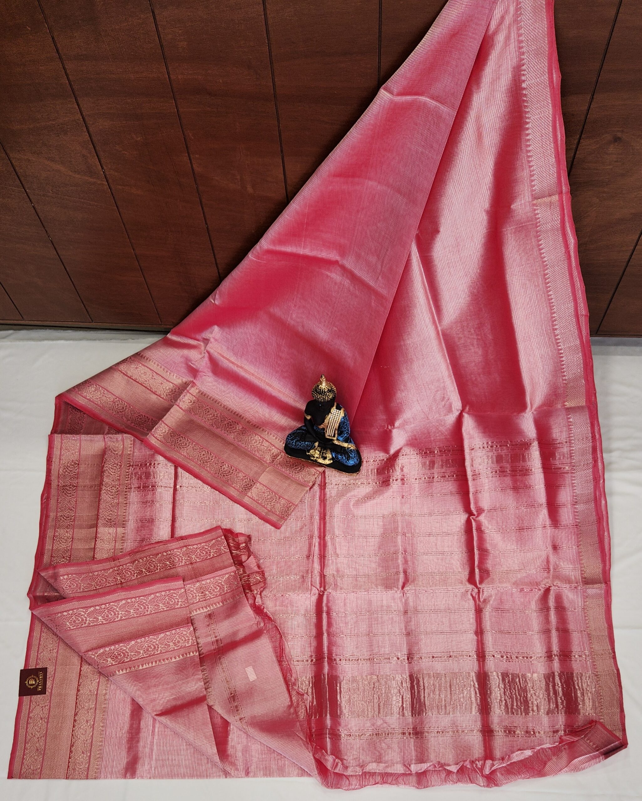 Pure Mangalgiri silk saree featuring a grand Kanchi zari border and pallu—classic elegance in every drape.
