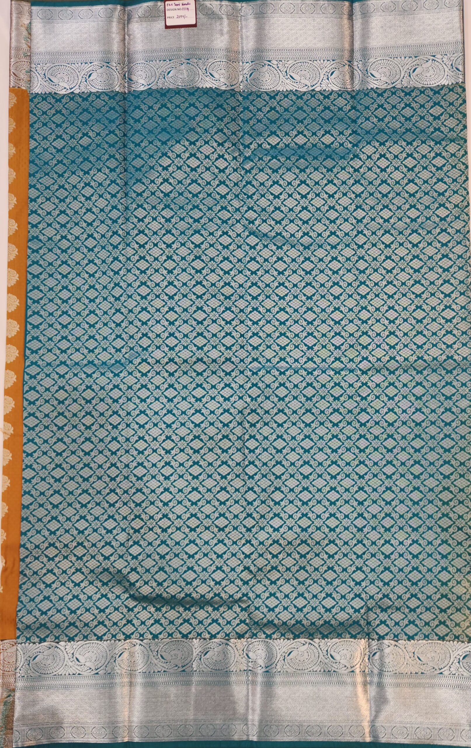 Grace meets grandeur in this stunning Kanchi Semi-Silk Saree, a timeless piece that blends tradition with modern elegance. Woven with rich semi-silk fabric, the saree features a beautifully contrasting pallu and matching blouse piece, adding depth and dimension to its overall appeal. Its soft texture drapes effortlessly, making it ideal for festive occasions, weddings, or cultural events. The intricate weave and vibrant hues celebrate the legacy of Kanchipuram artistry in a contemporary form