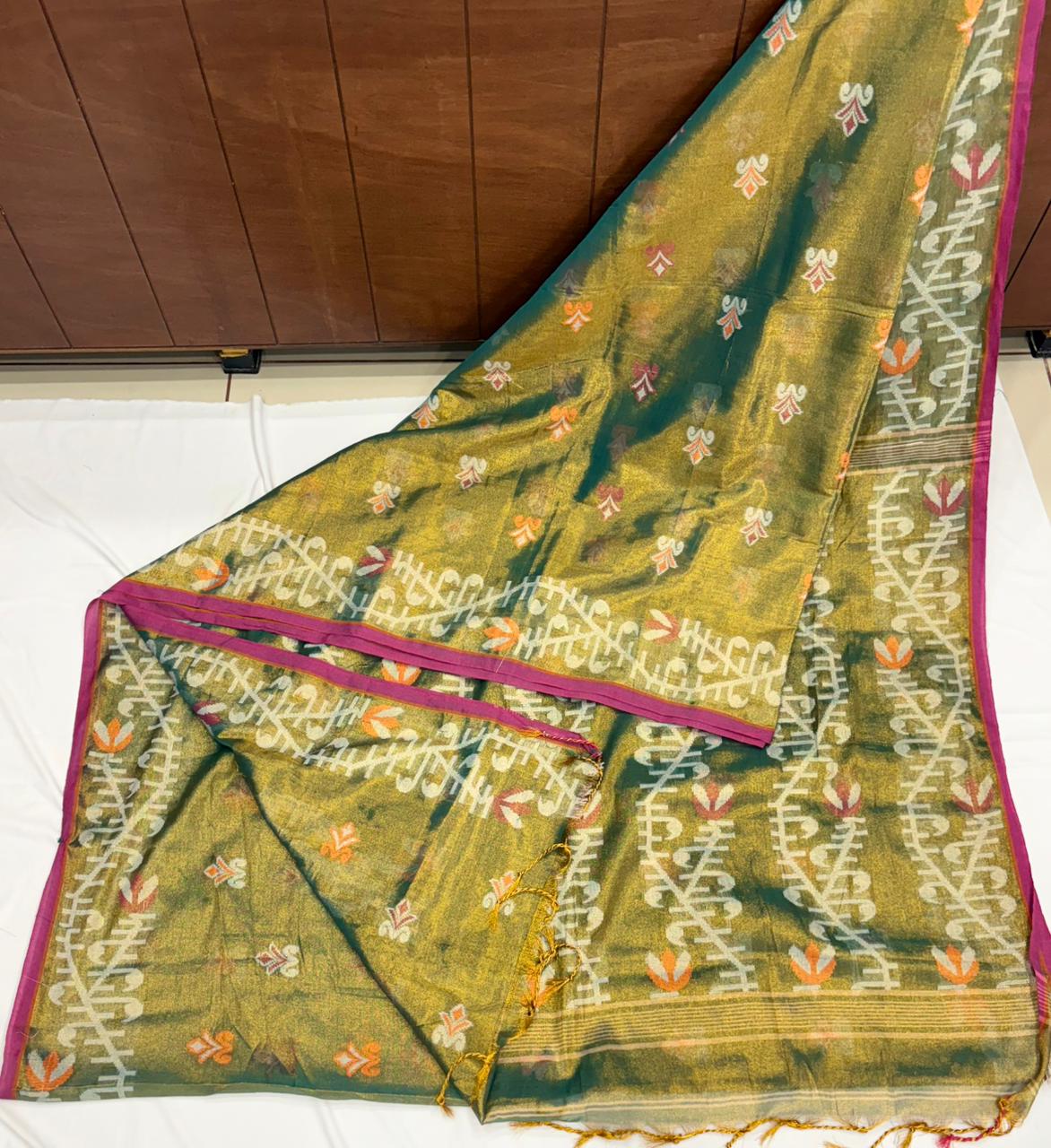 Shimmering Soft Tissue Saree with Handwoven Jamdani Motifs